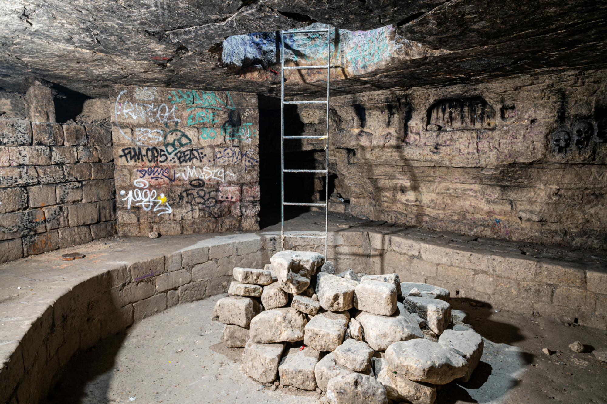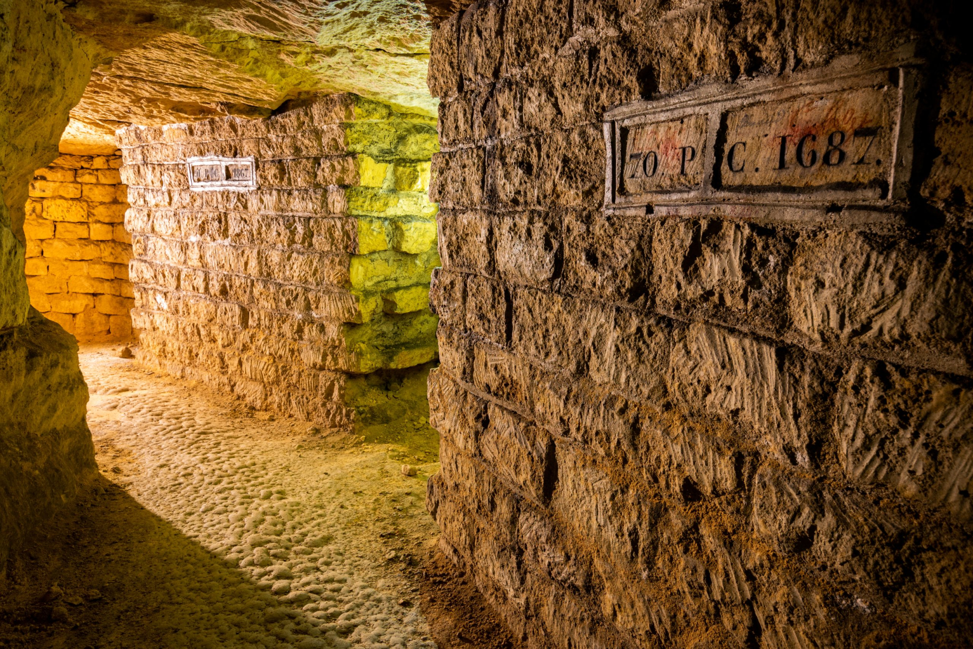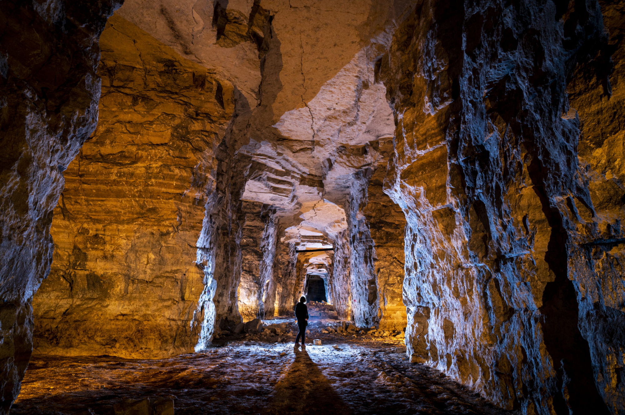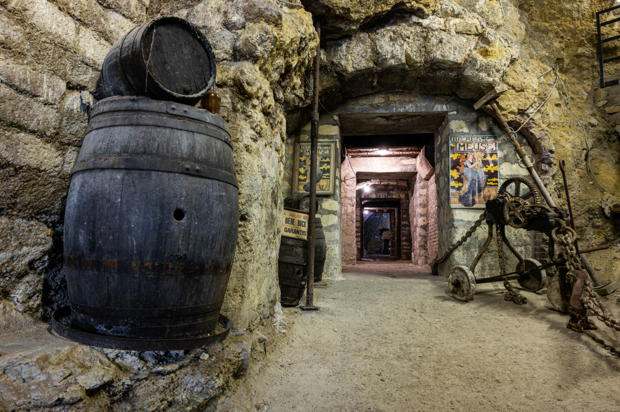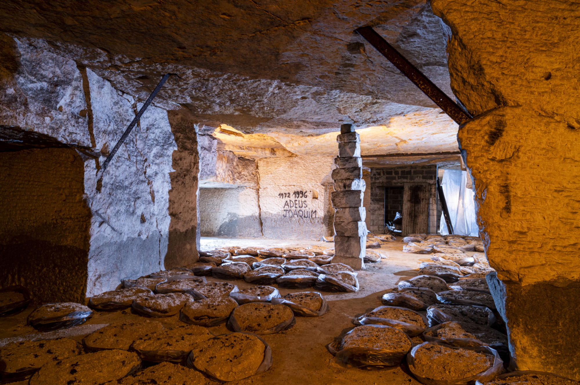 Piliers écaillés dans cette champignonnière. La surexploitation des sols cumulées à la surcharge des terrains de surface font flamber les piliers de masse de la carrière. Déjà très fragilisée par un premier effondrement en 1963 puis un second en 2001. C'est maintenant plus qu'une question de temps avant que cette zone se referme sur elle-même.