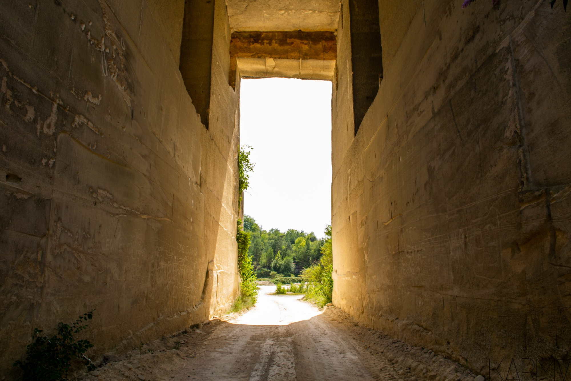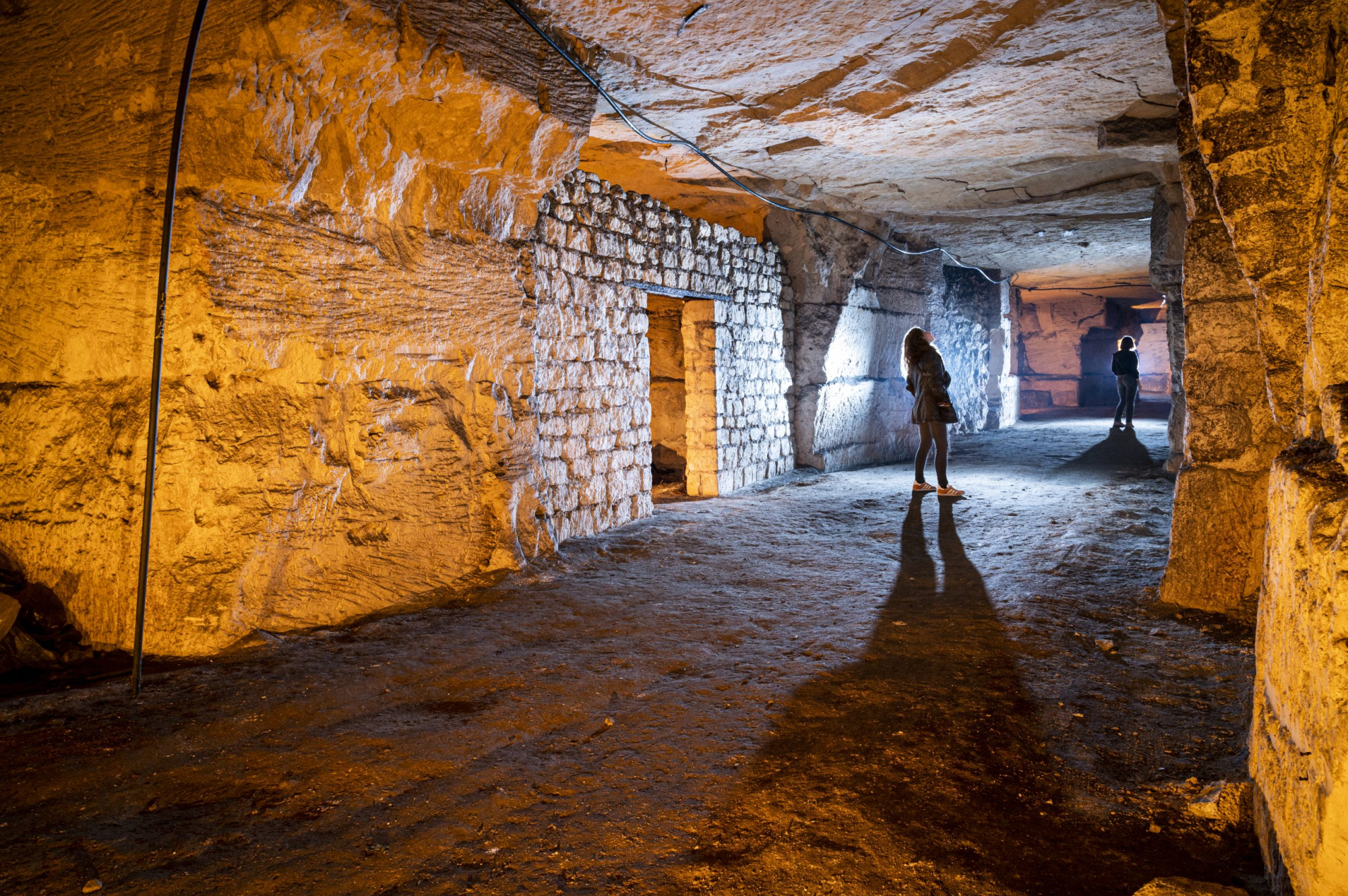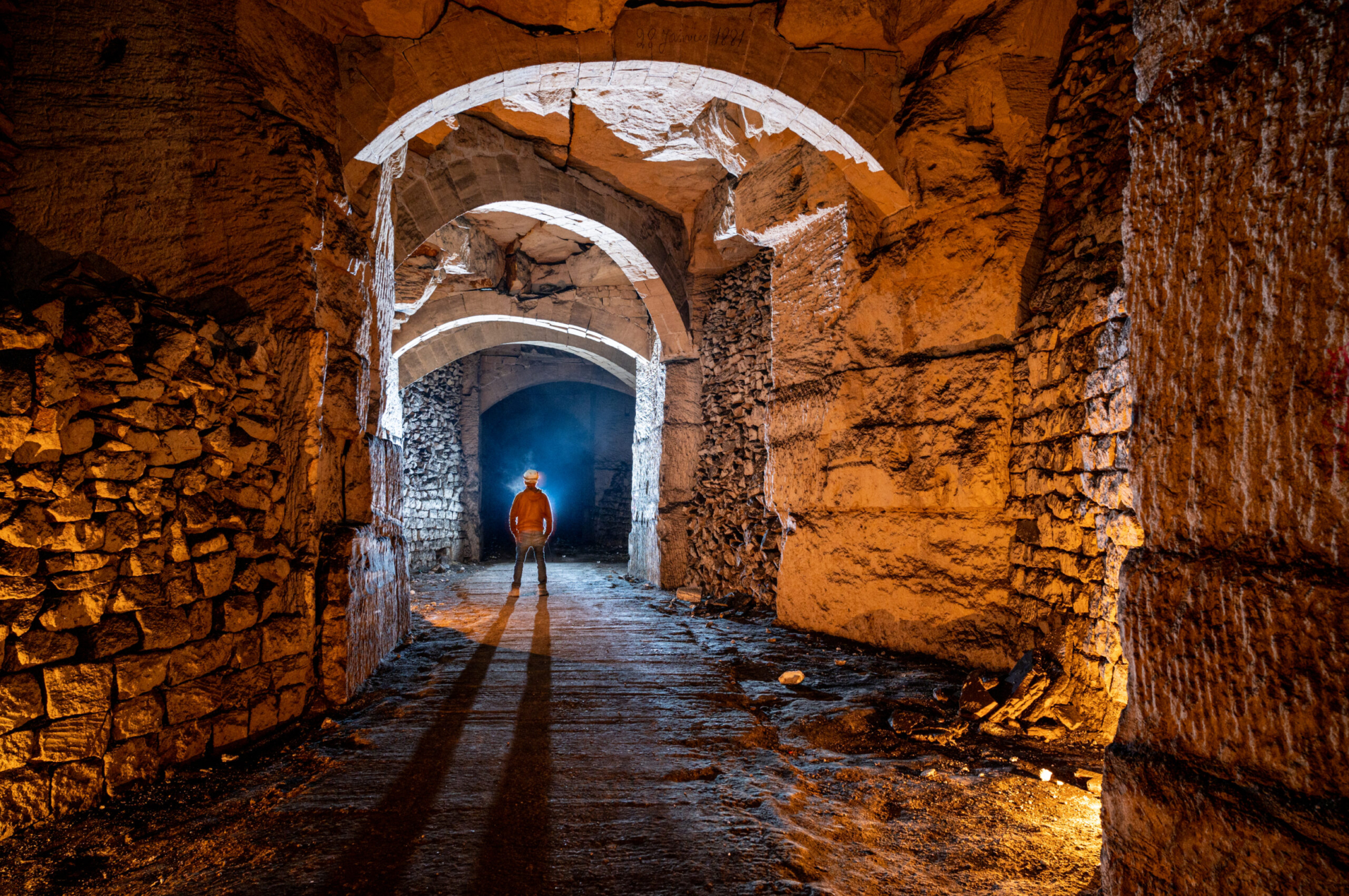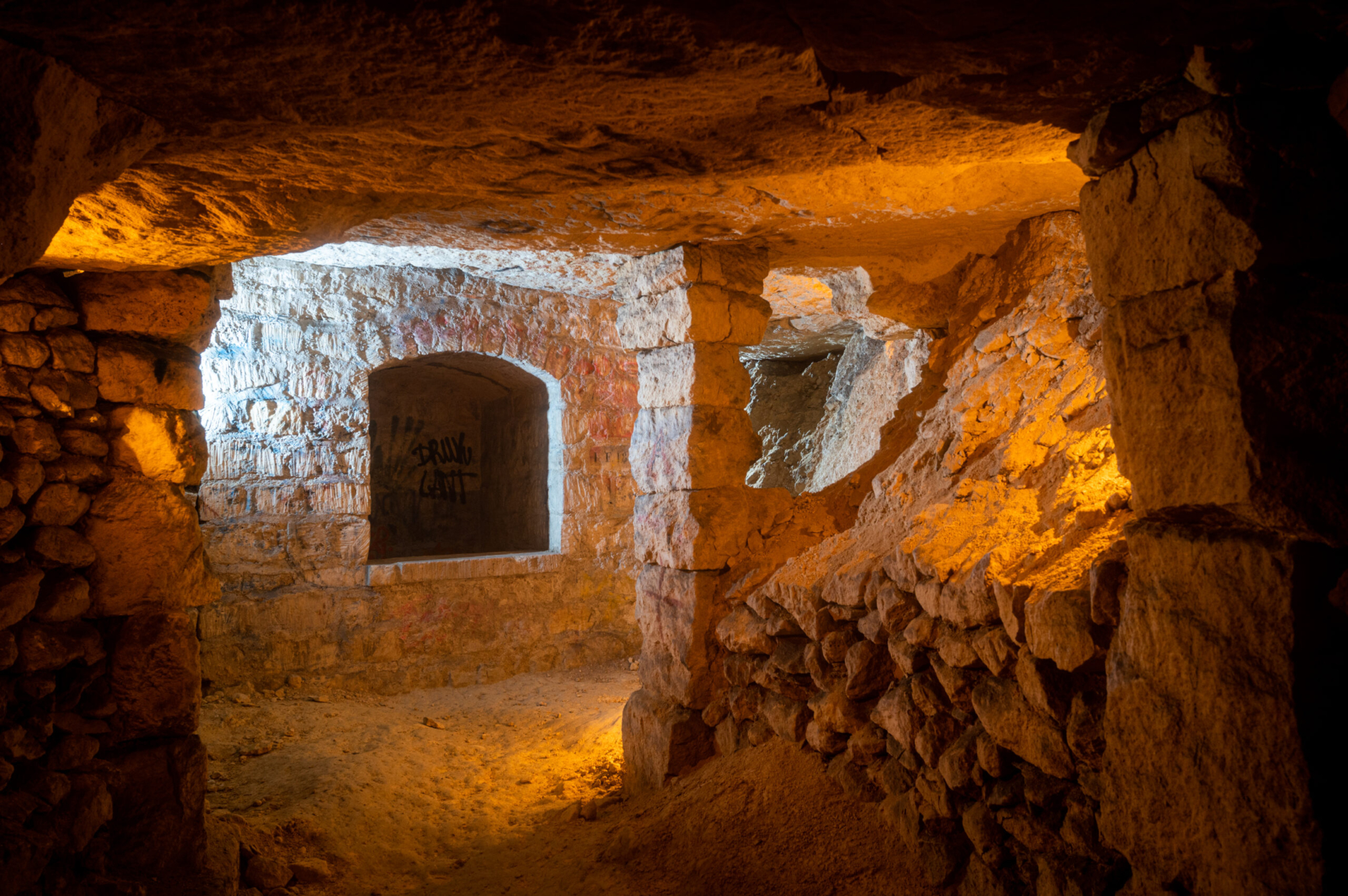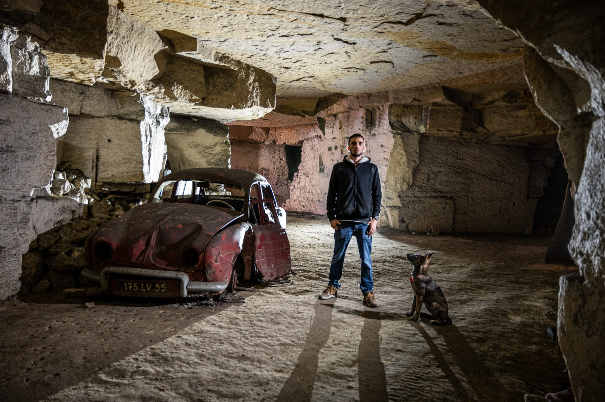 Piliers écaillés dans cette champignonnière. La surexploitation des sols cumulées à la surcharge des terrains de surface font flamber les piliers de masse de la carrière. Déjà très fragilisée par un premier effondrement en 1963 puis un second en 2001. C'est maintenant plus qu'une question de temps avant que cette zone se referme sur elle-même.