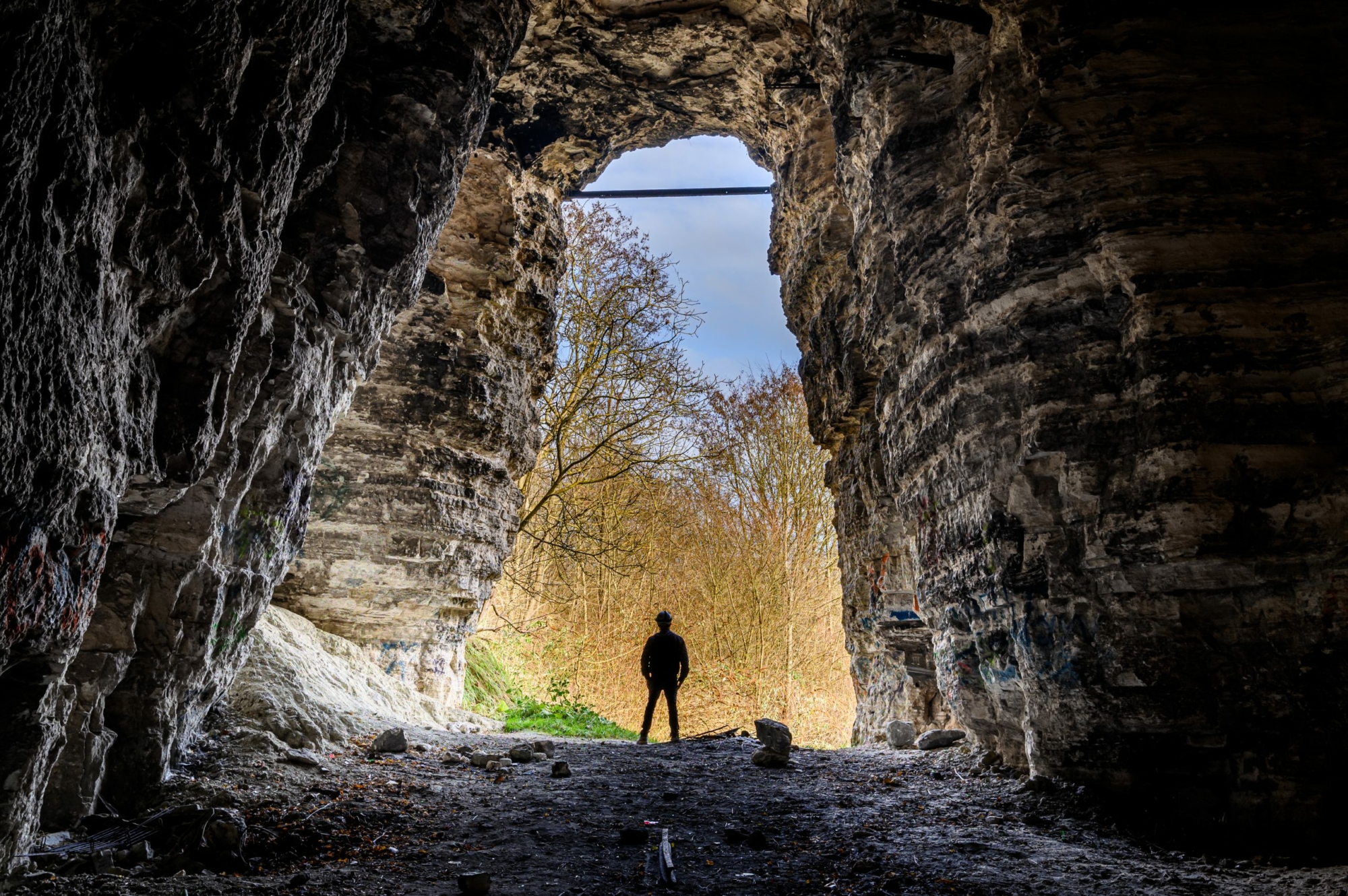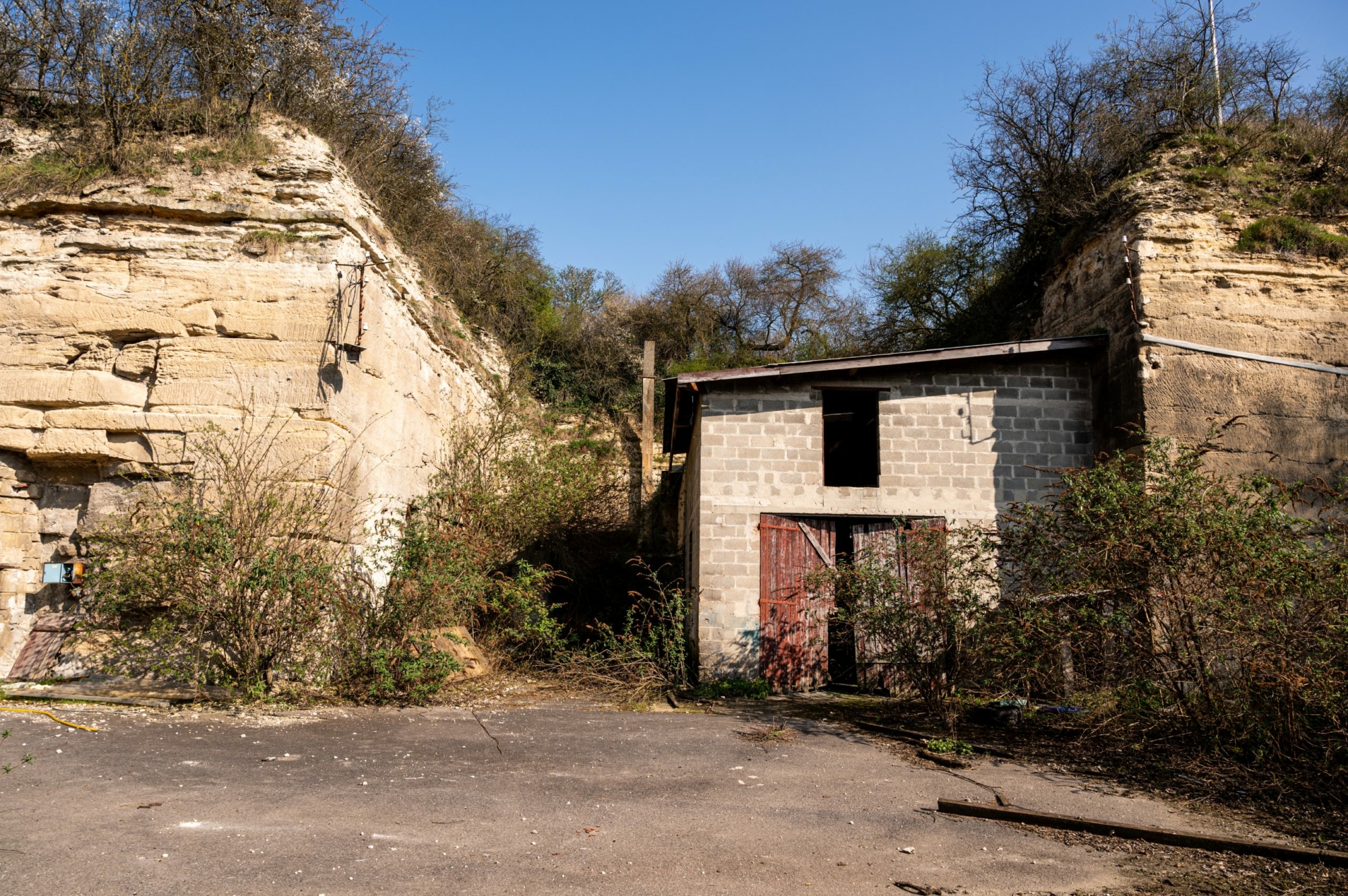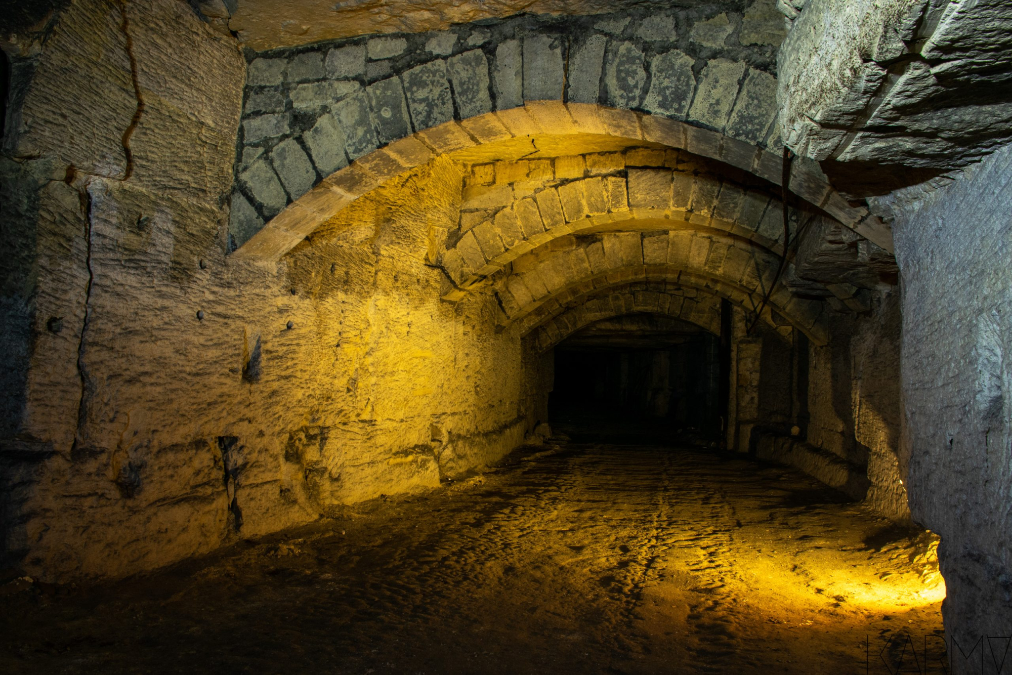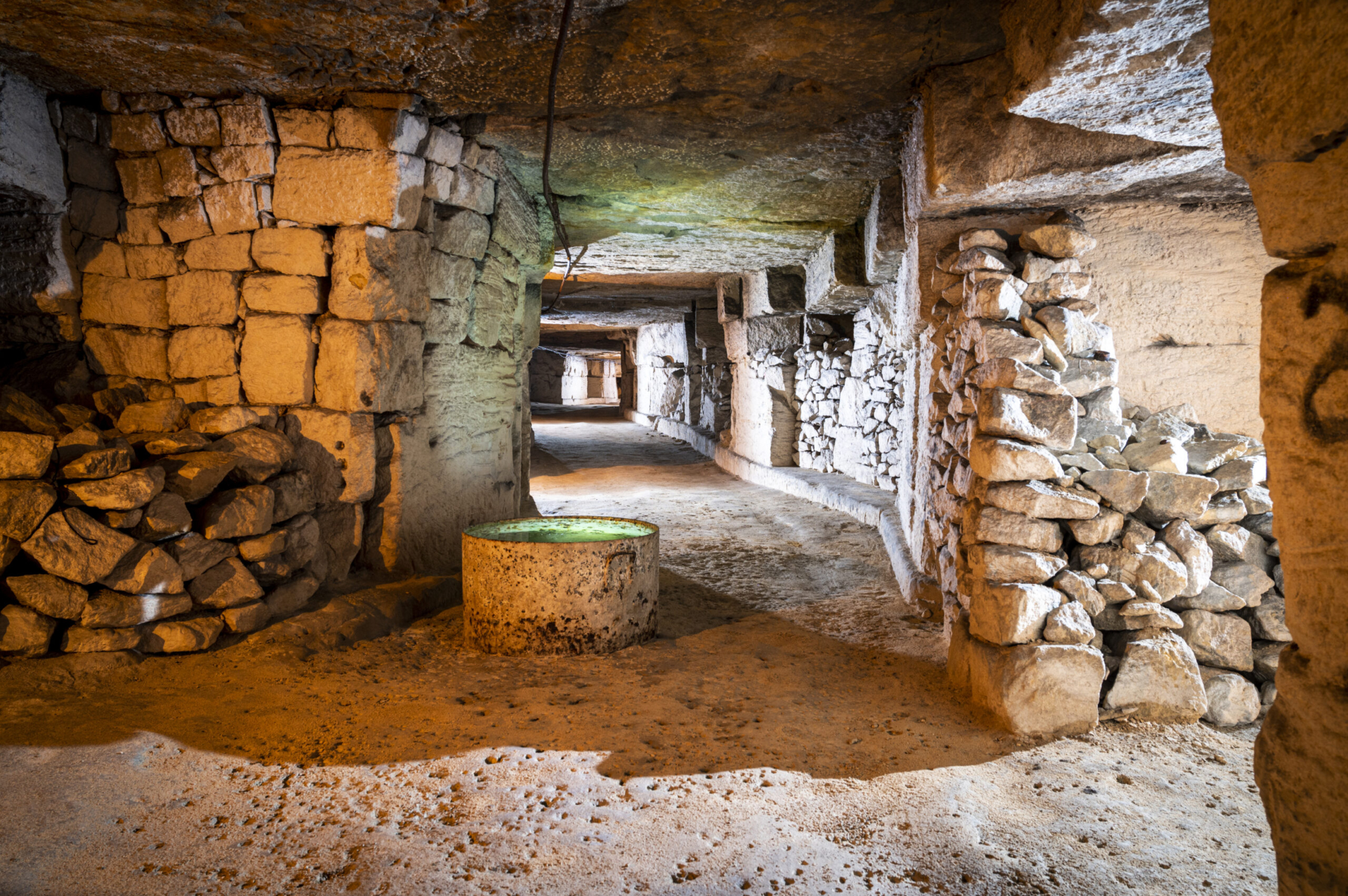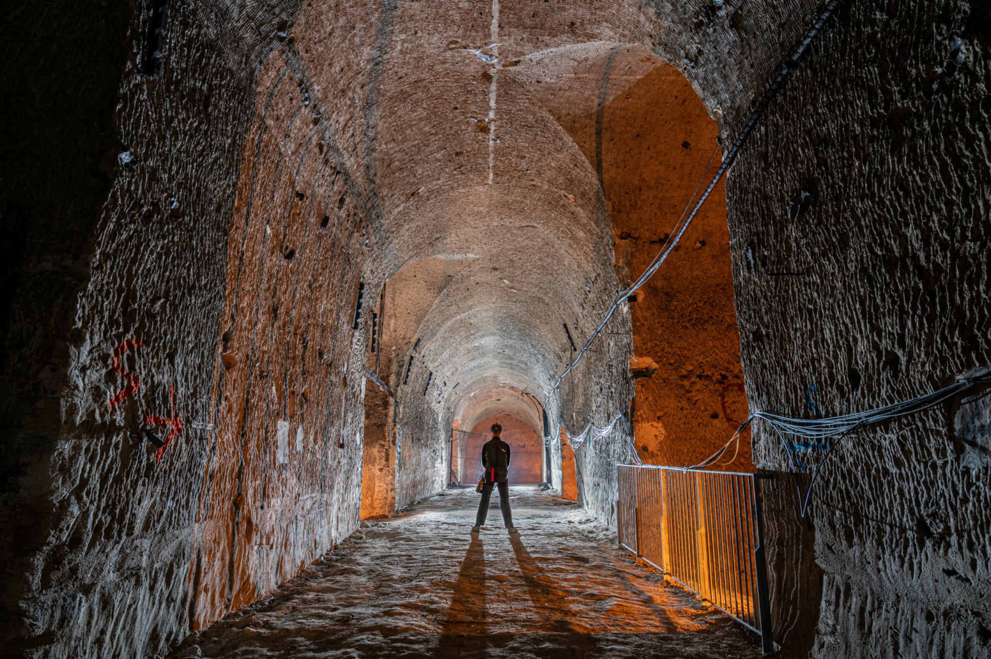 Piliers écaillés dans cette champignonnière. La surexploitation des sols cumulées à la surcharge des terrains de surface font flamber les piliers de masse de la carrière. Déjà très fragilisée par un premier effondrement en 1963 puis un second en 2001. C'est maintenant plus qu'une question de temps avant que cette zone se referme sur elle-même.