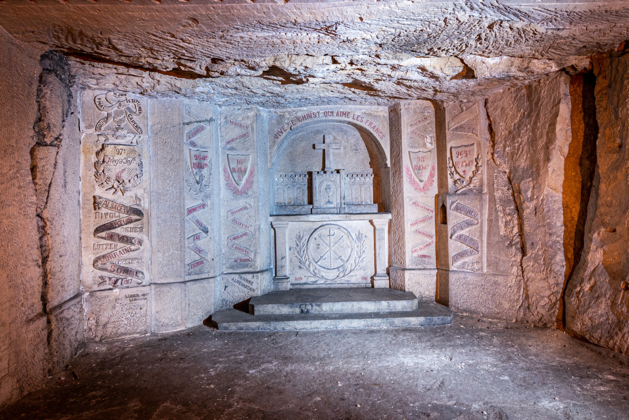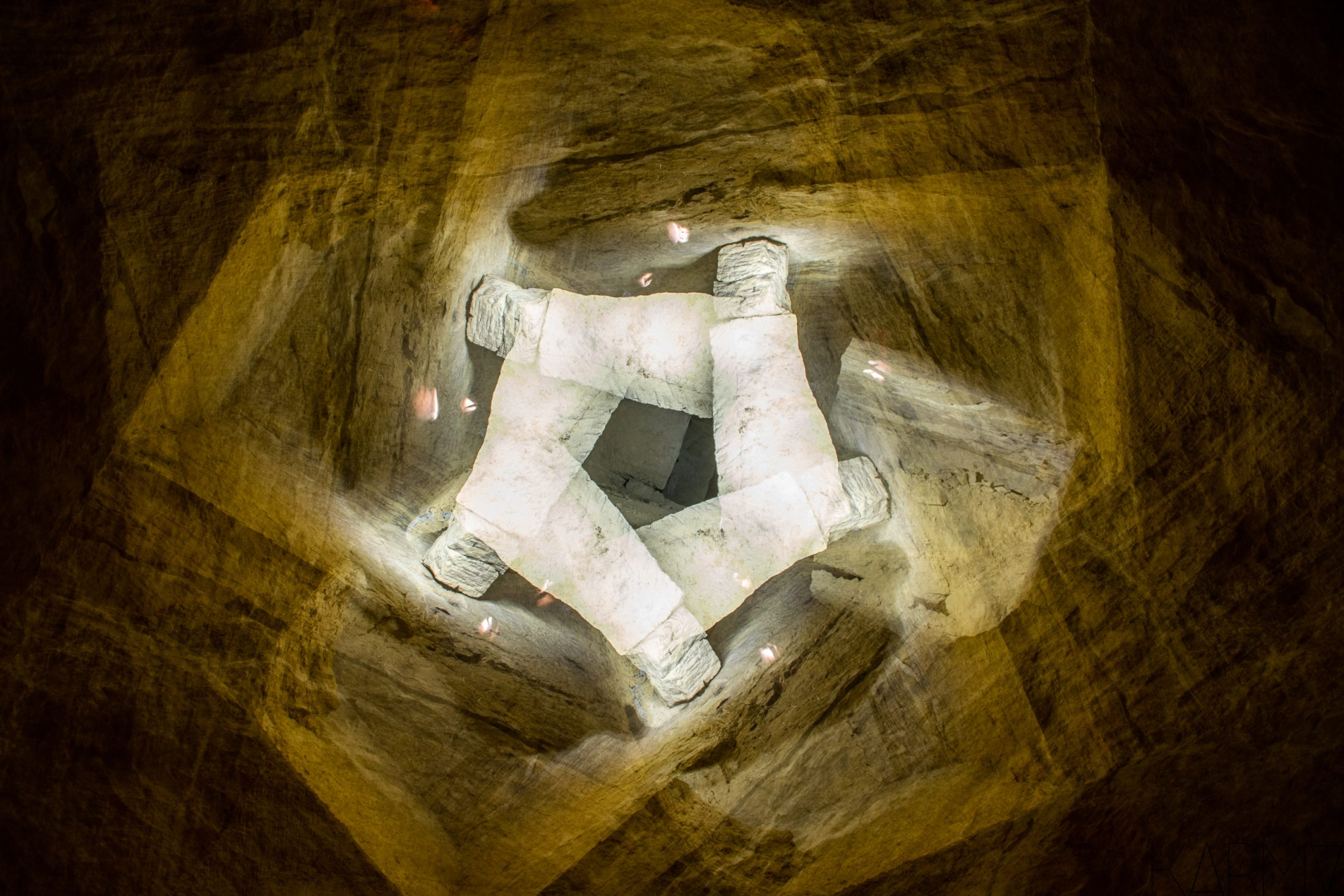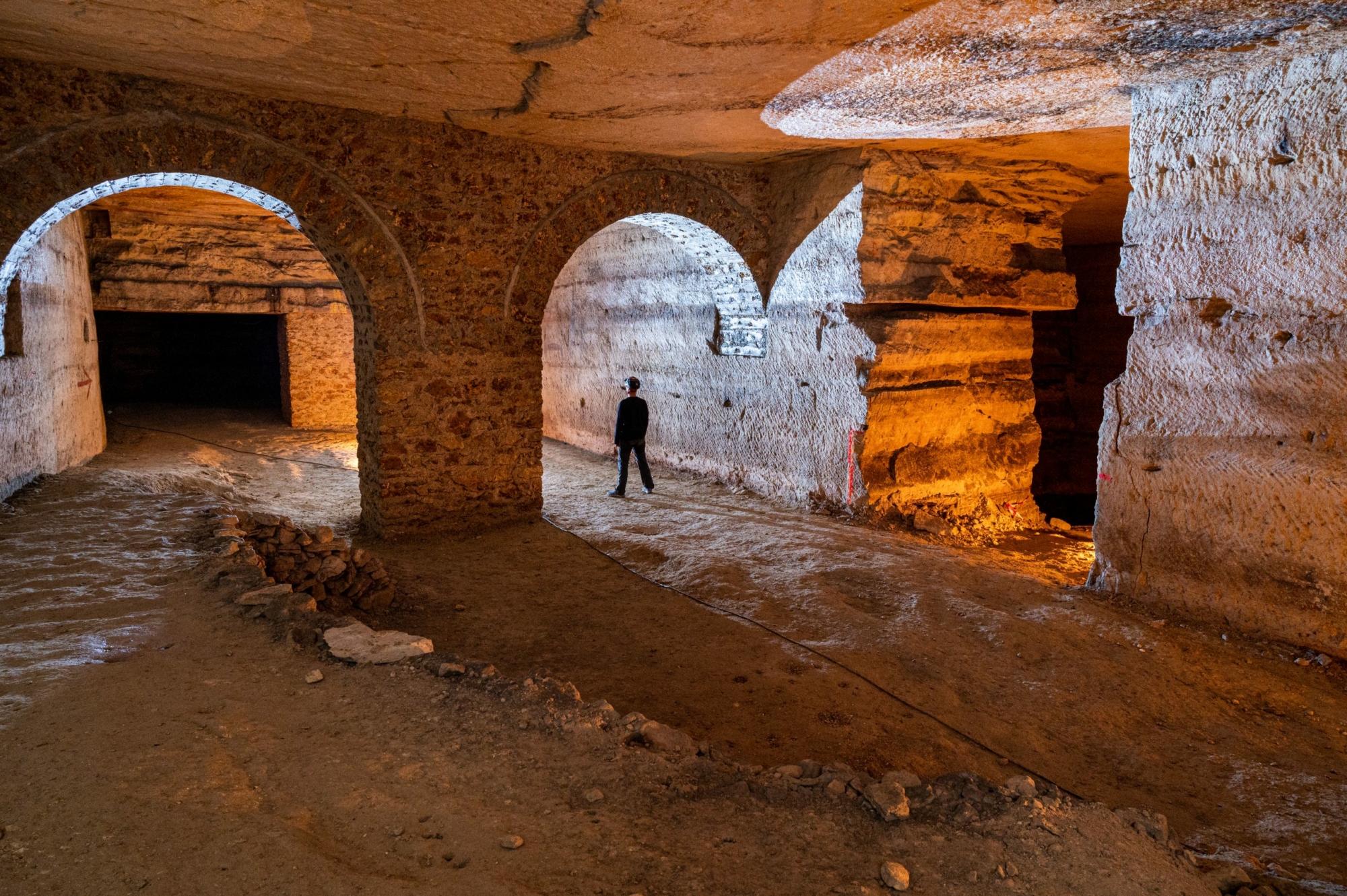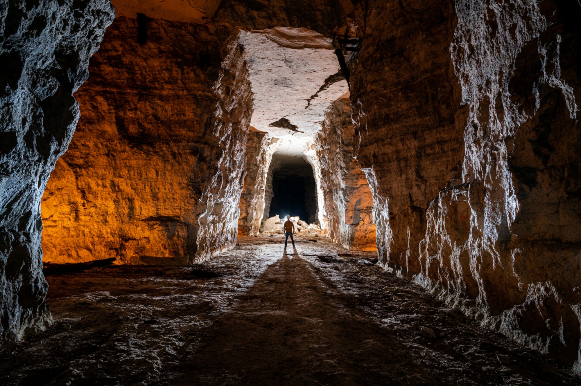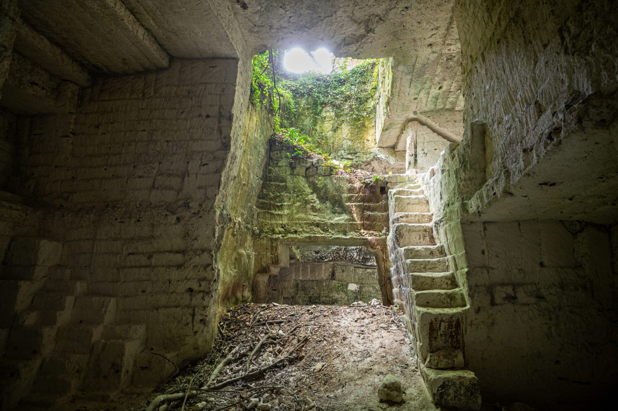 Piliers écaillés dans cette champignonnière. La surexploitation des sols cumulées à la surcharge des terrains de surface font flamber les piliers de masse de la carrière. Déjà très fragilisée par un premier effondrement en 1963 puis un second en 2001. C'est maintenant plus qu'une question de temps avant que cette zone se referme sur elle-même.