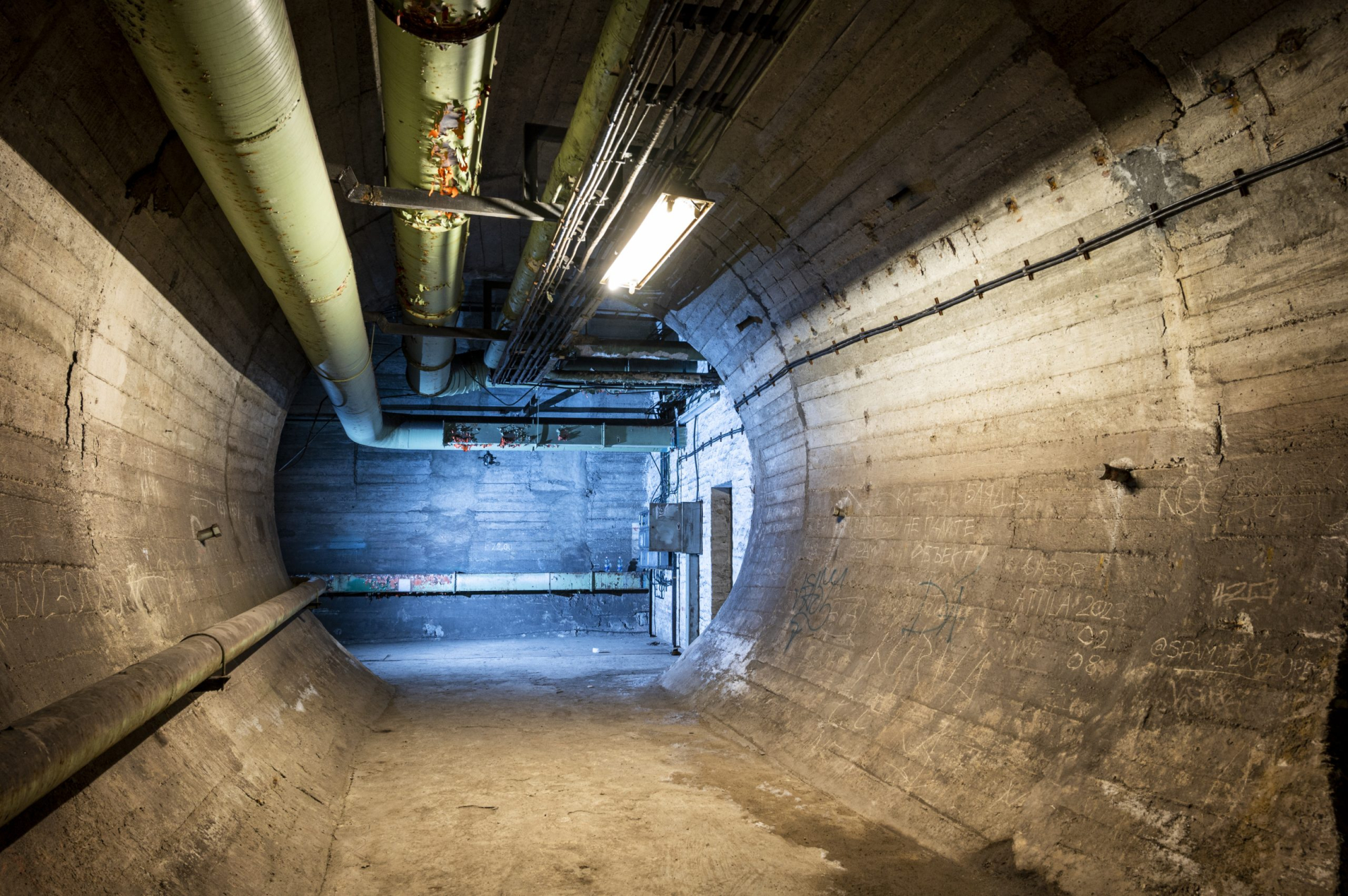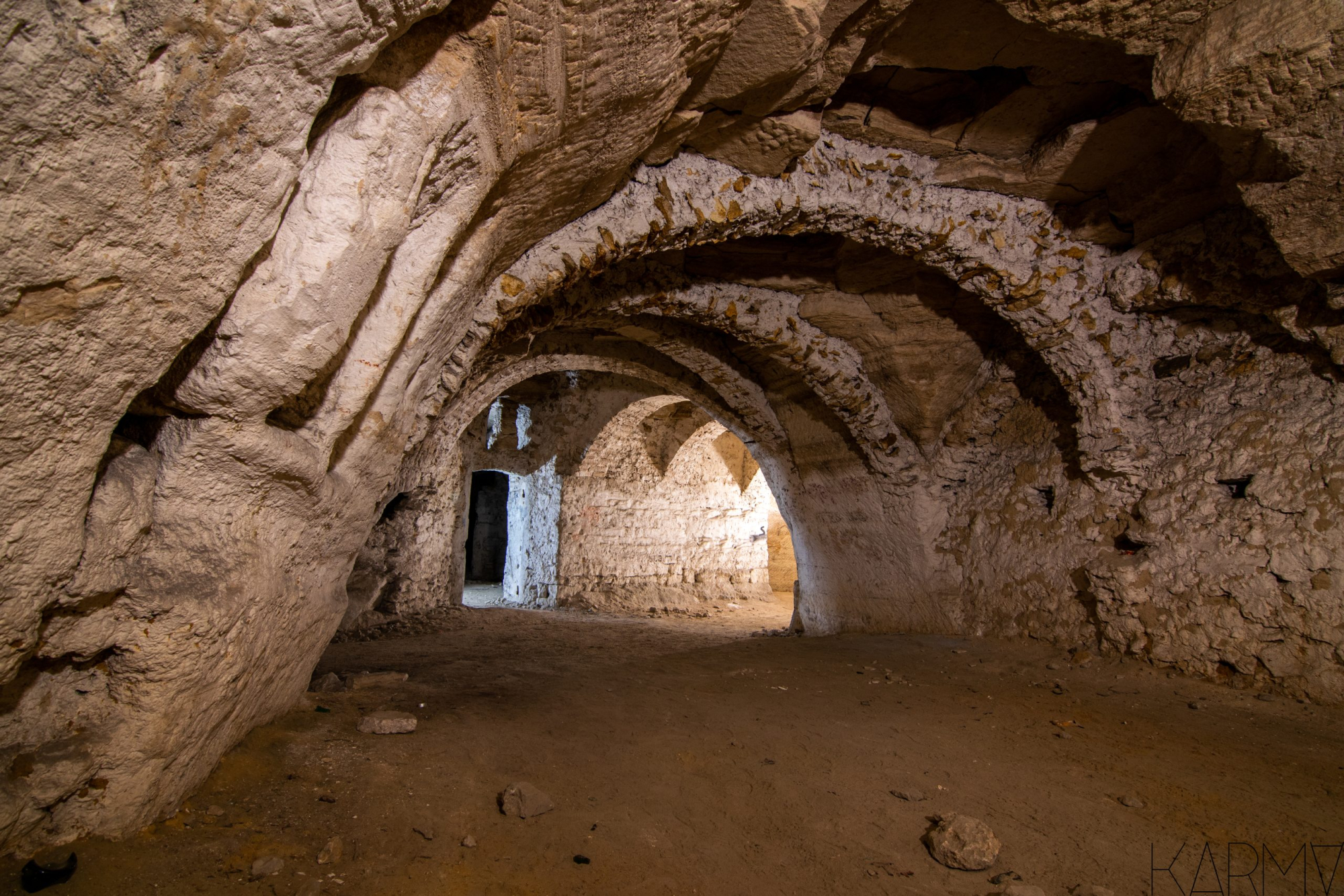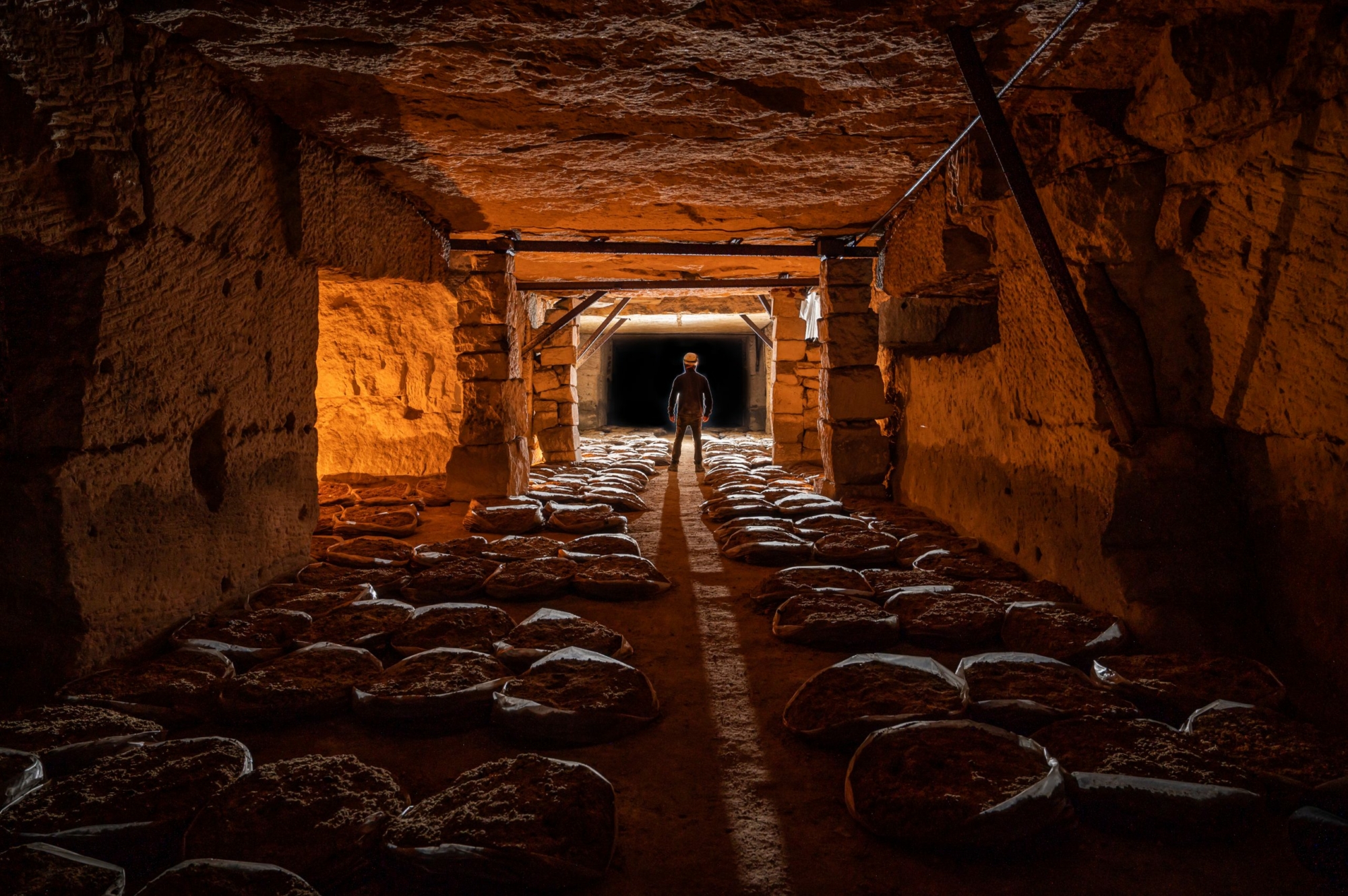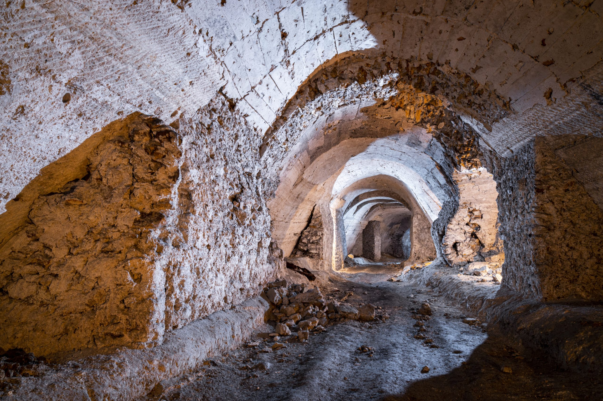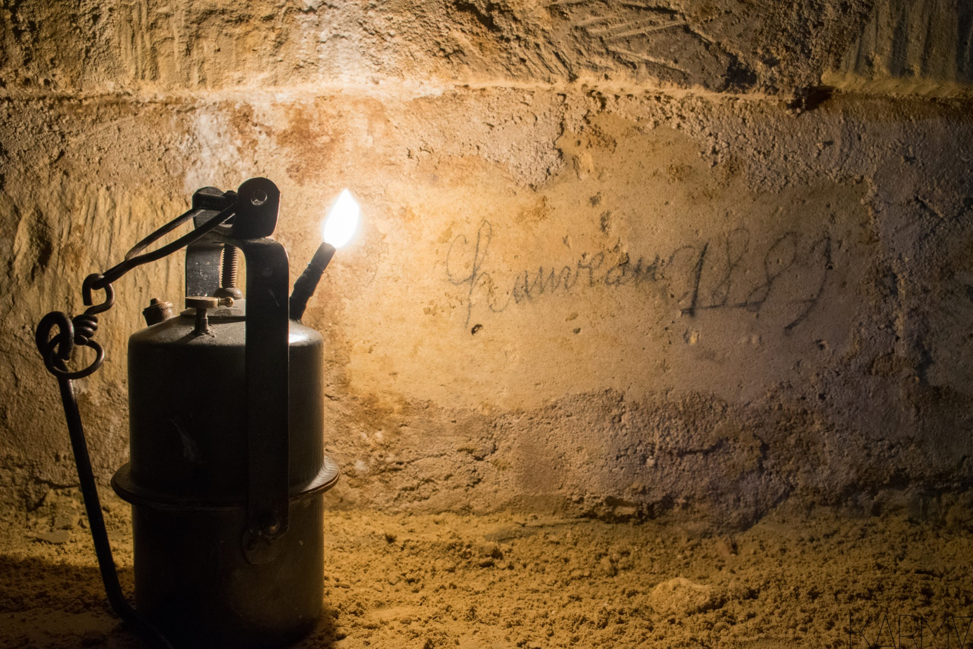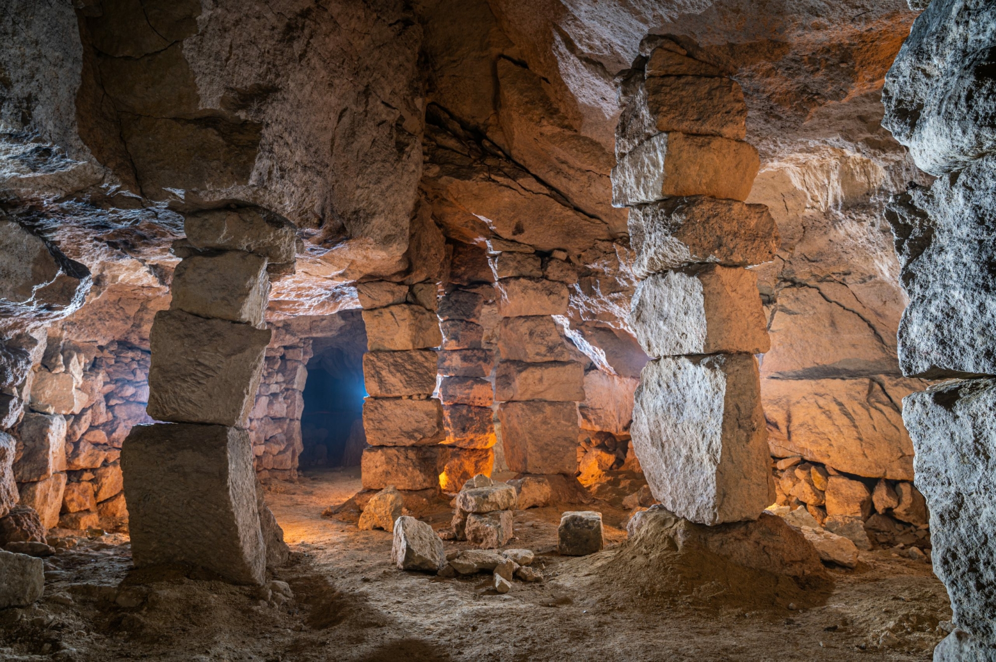 Piliers écaillés dans cette champignonnière. La surexploitation des sols cumulées à la surcharge des terrains de surface font flamber les piliers de masse de la carrière. Déjà très fragilisée par un premier effondrement en 1963 puis un second en 2001. C'est maintenant plus qu'une question de temps avant que cette zone se referme sur elle-même.