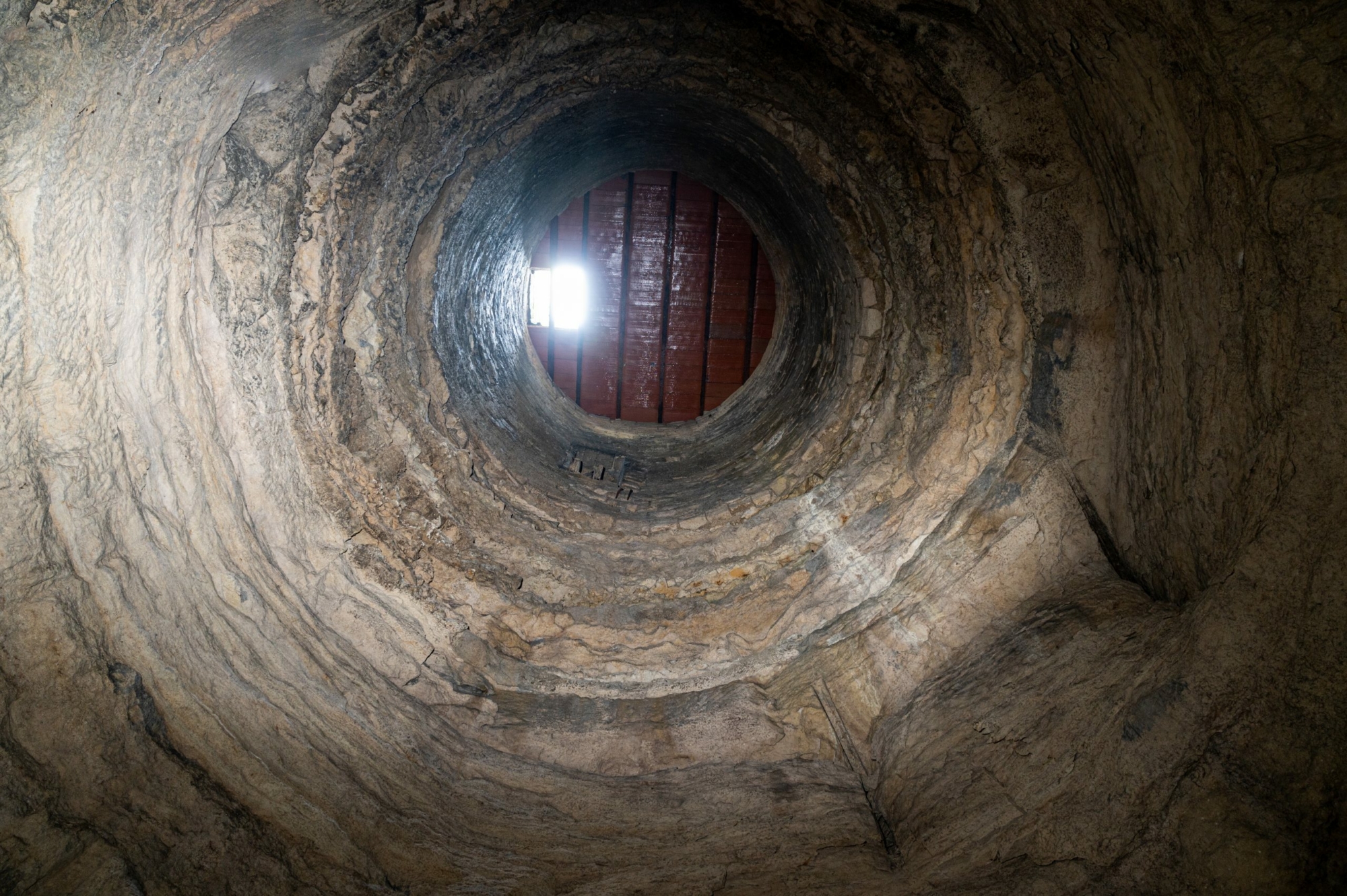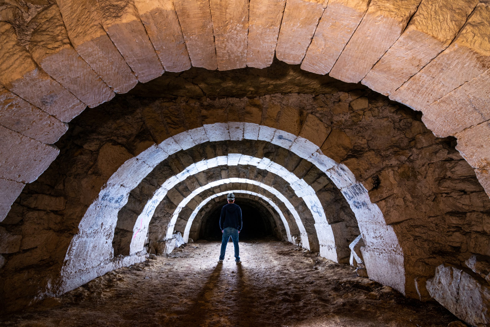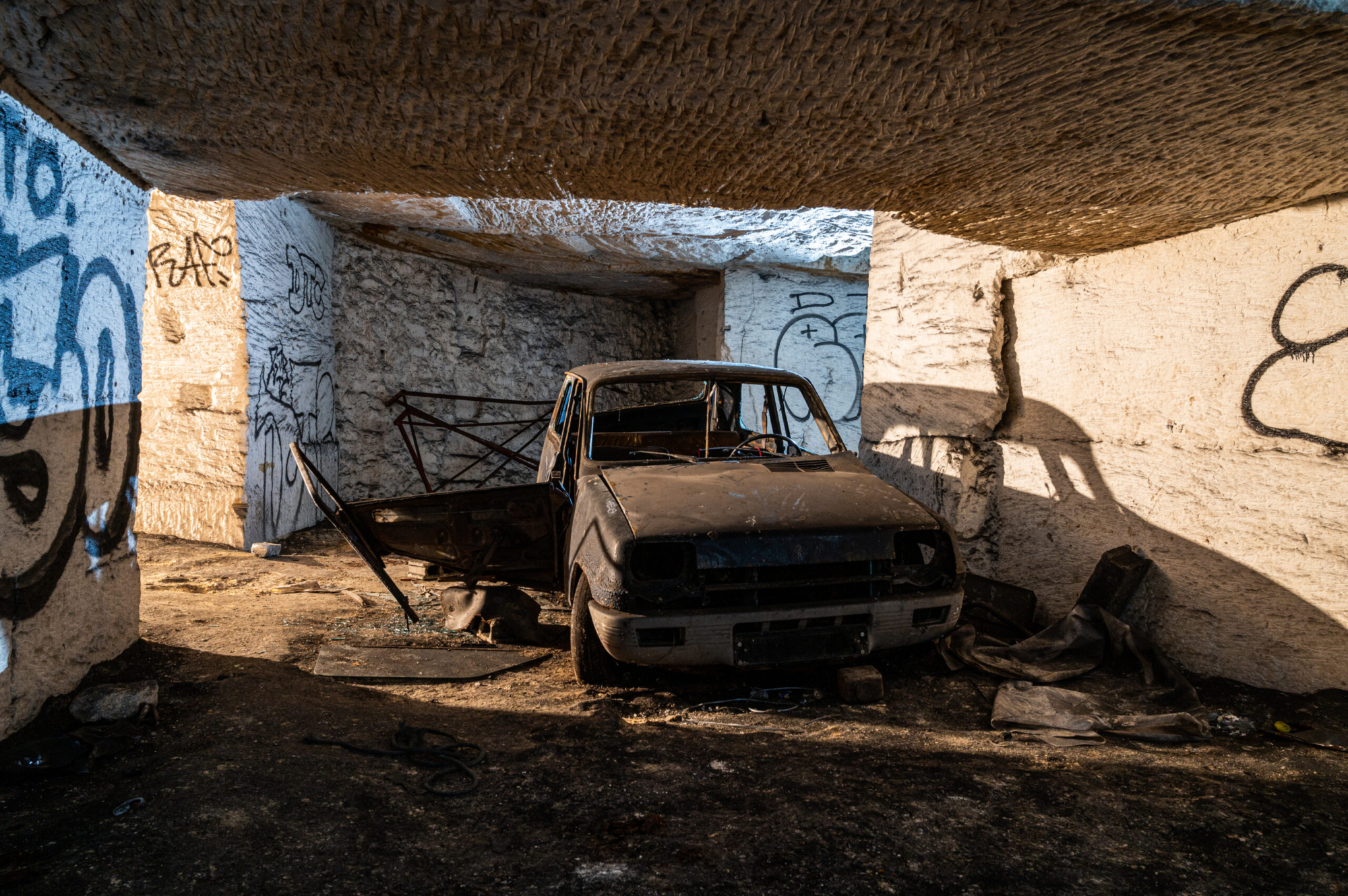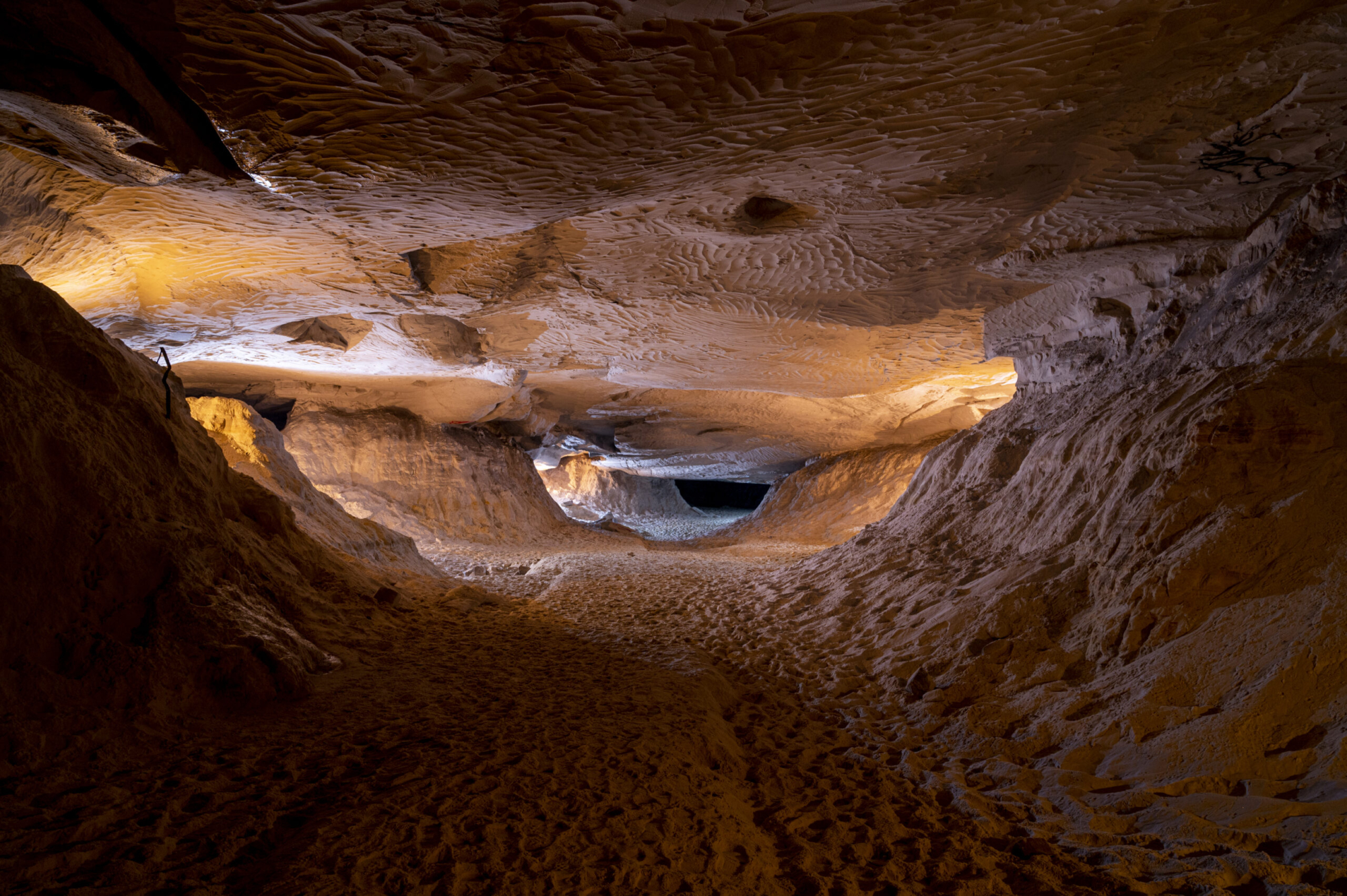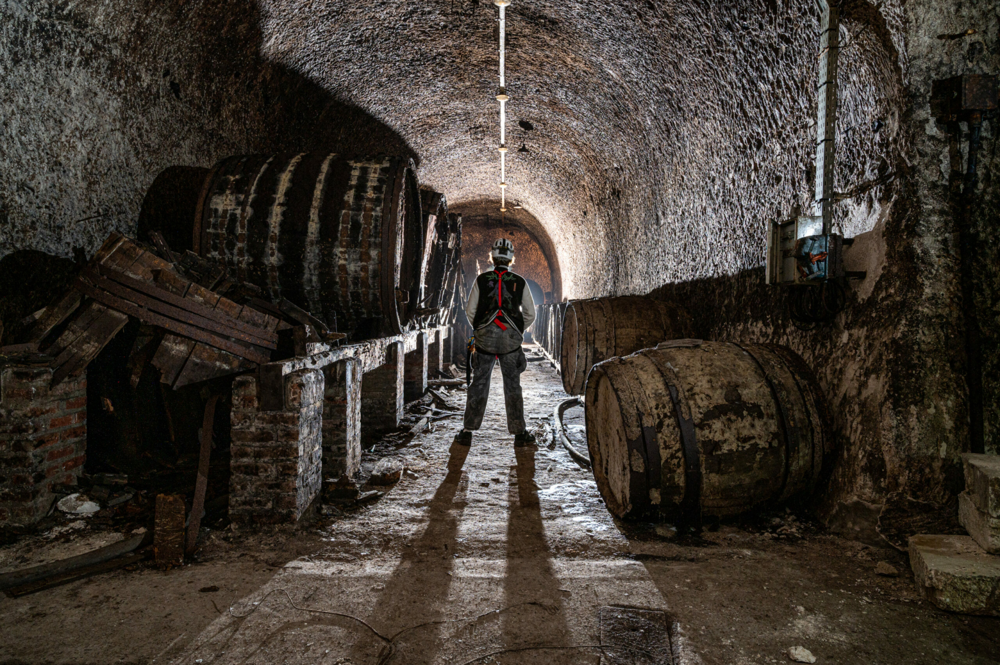 Piliers écaillés dans cette champignonnière. La surexploitation des sols cumulées à la surcharge des terrains de surface font flamber les piliers de masse de la carrière. Déjà très fragilisée par un premier effondrement en 1963 puis un second en 2001. C'est maintenant plus qu'une question de temps avant que cette zone se referme sur elle-même.