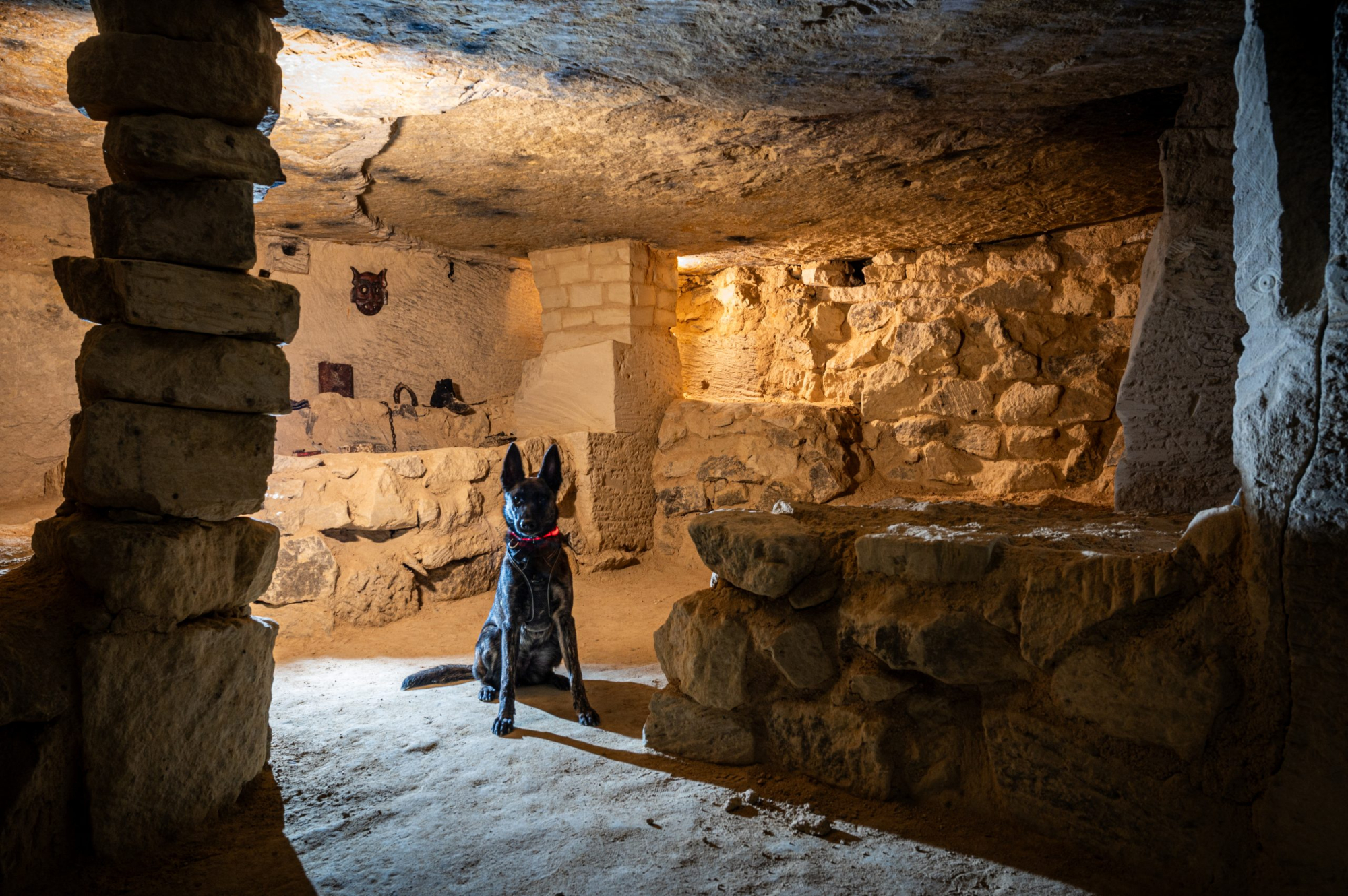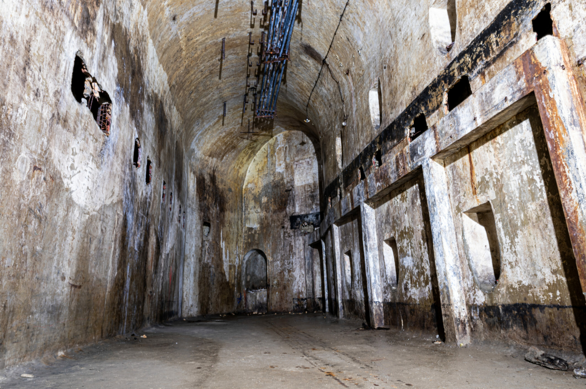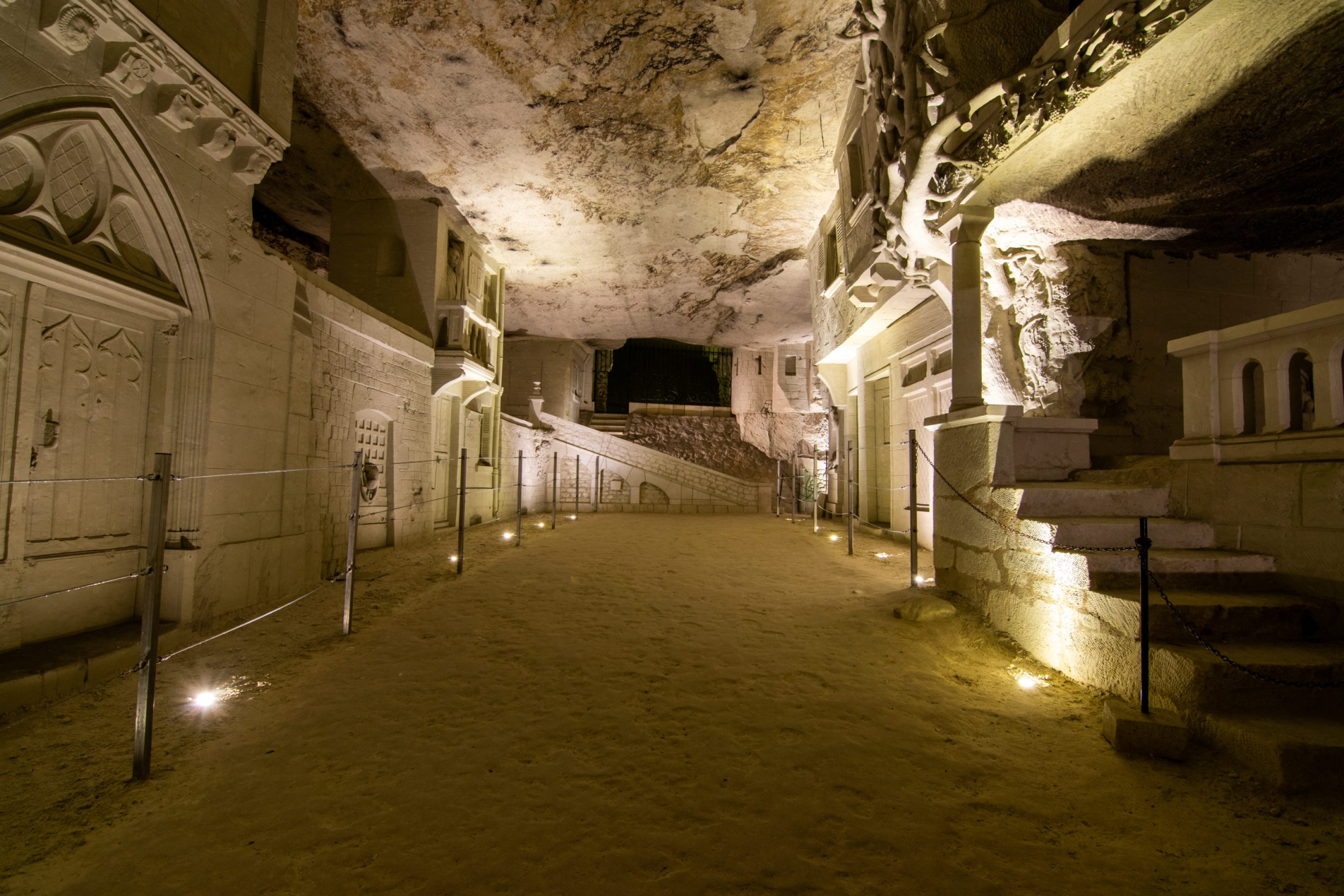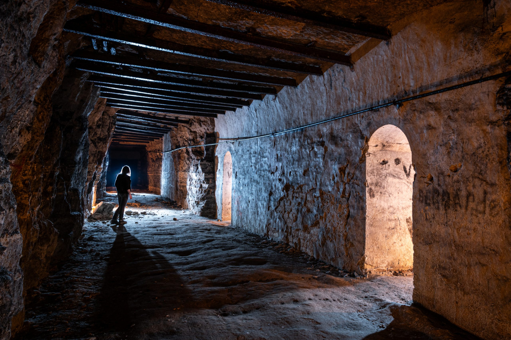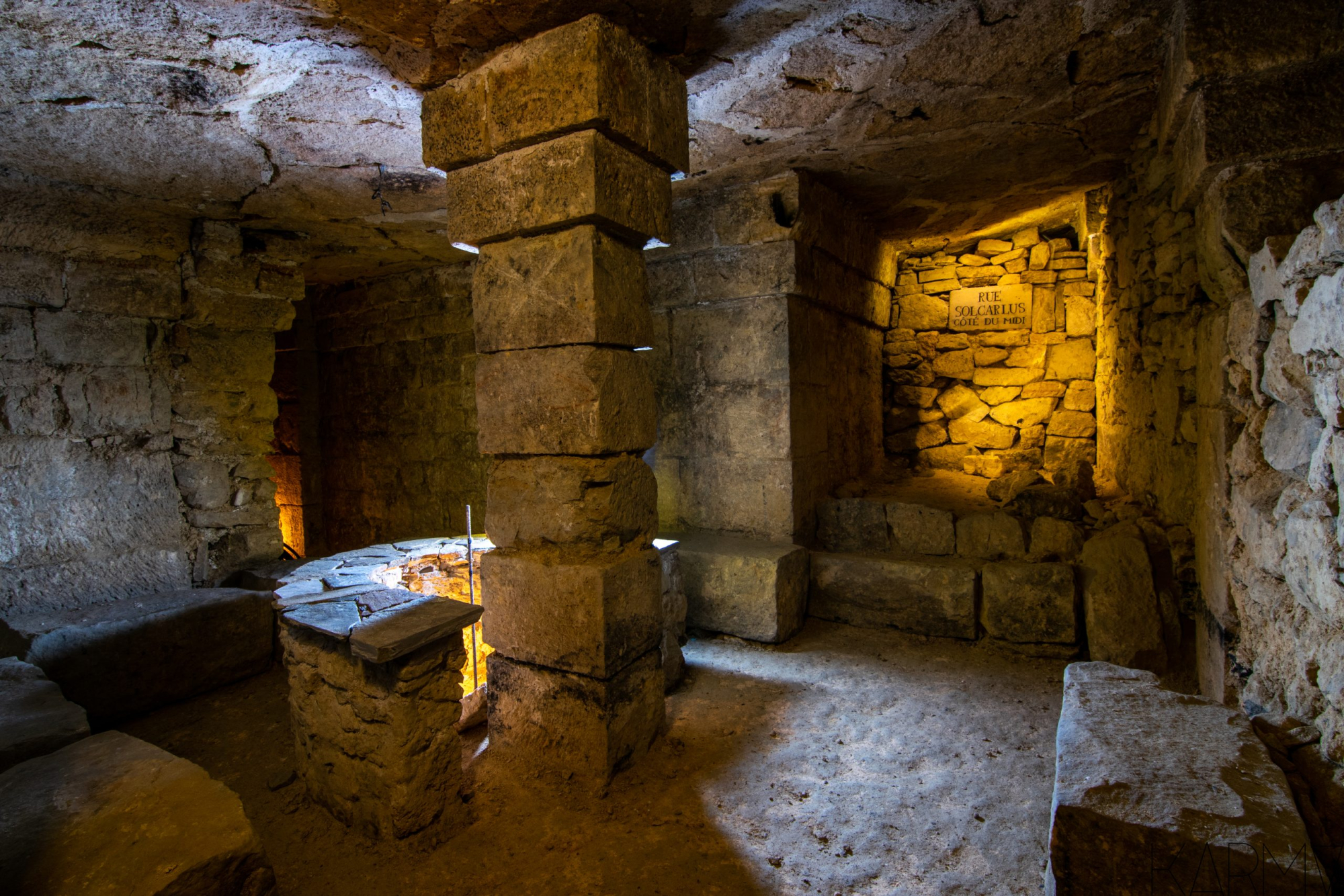 Piliers écaillés dans cette champignonnière. La surexploitation des sols cumulées à la surcharge des terrains de surface font flamber les piliers de masse de la carrière. Déjà très fragilisée par un premier effondrement en 1963 puis un second en 2001. C'est maintenant plus qu'une question de temps avant que cette zone se referme sur elle-même.
