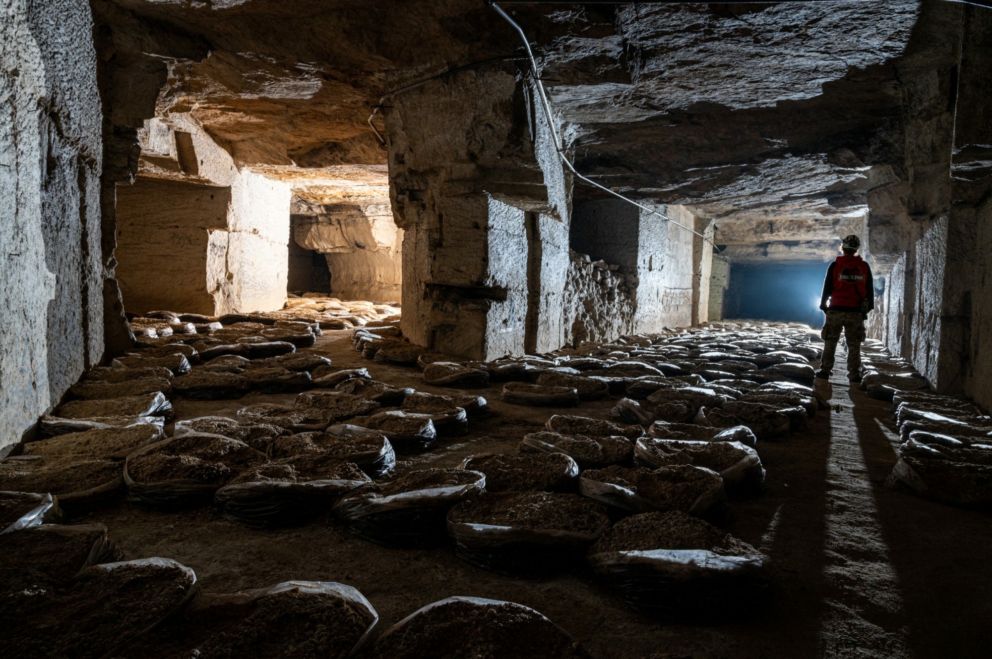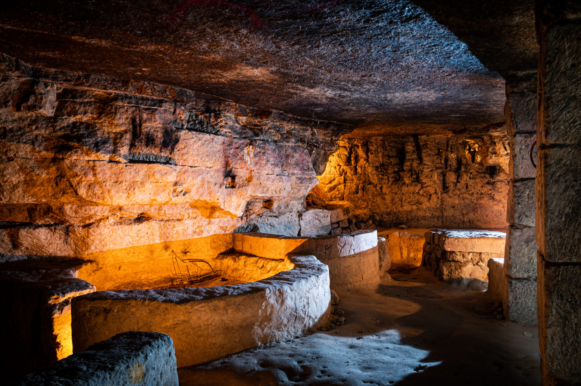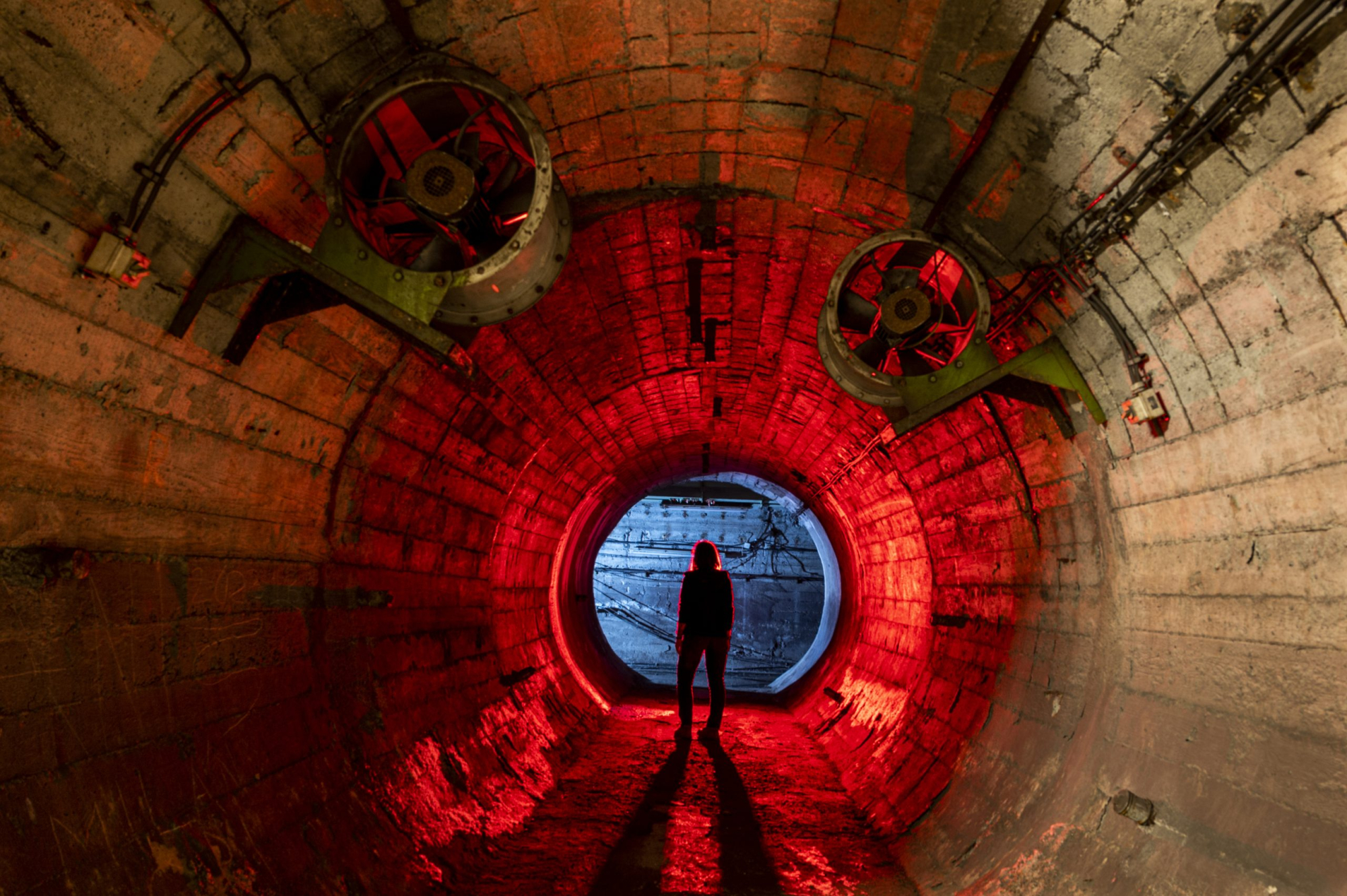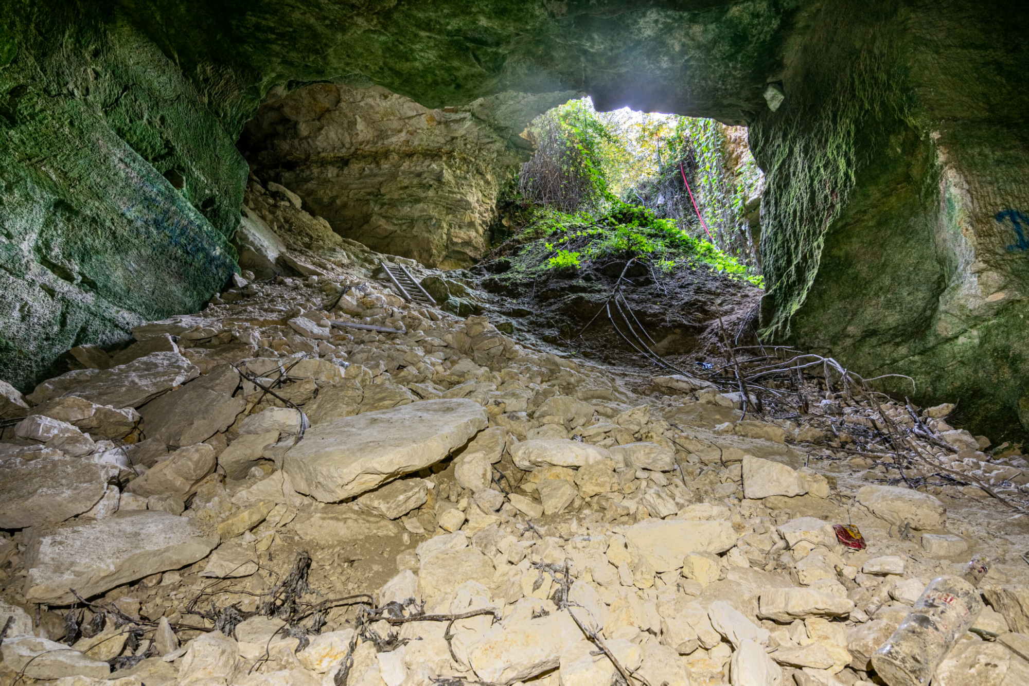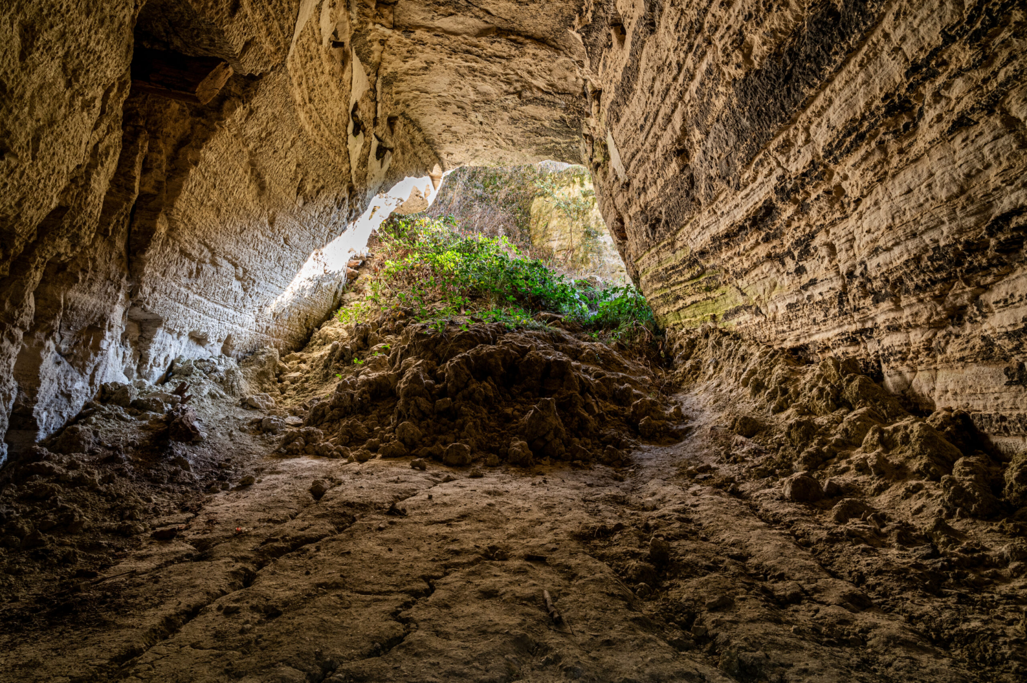 Piliers écaillés dans cette champignonnière. La surexploitation des sols cumulées à la surcharge des terrains de surface font flamber les piliers de masse de la carrière. Déjà très fragilisée par un premier effondrement en 1963 puis un second en 2001. C'est maintenant plus qu'une question de temps avant que cette zone se referme sur elle-même.