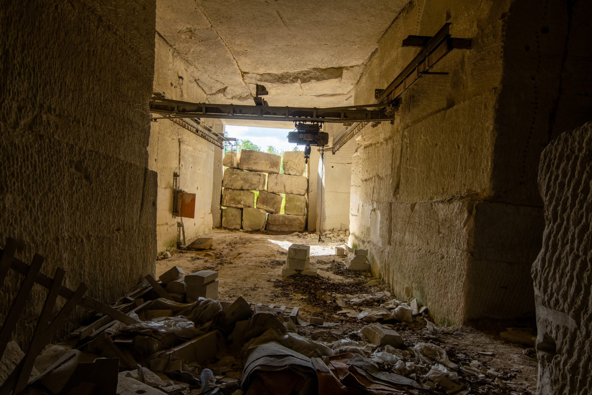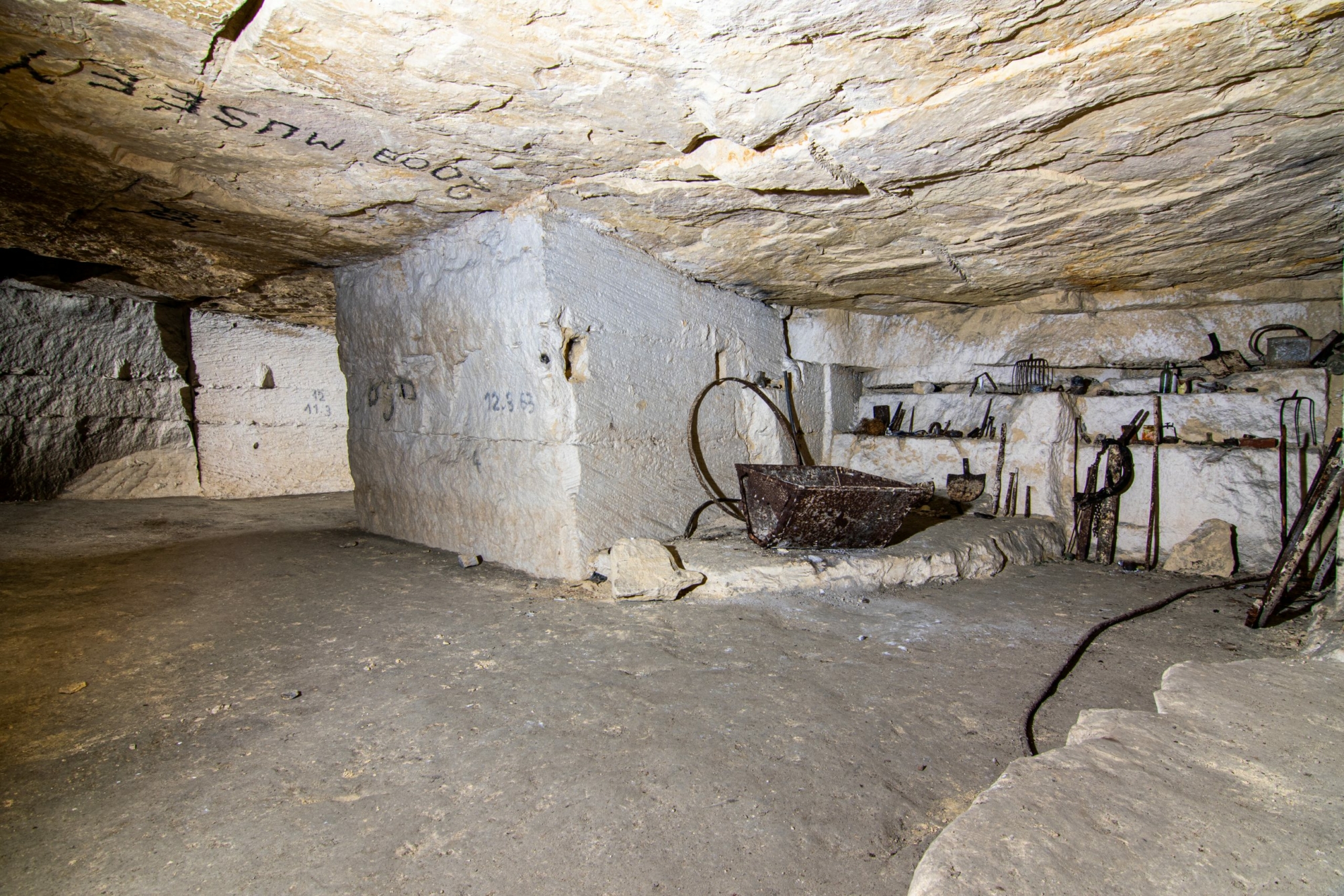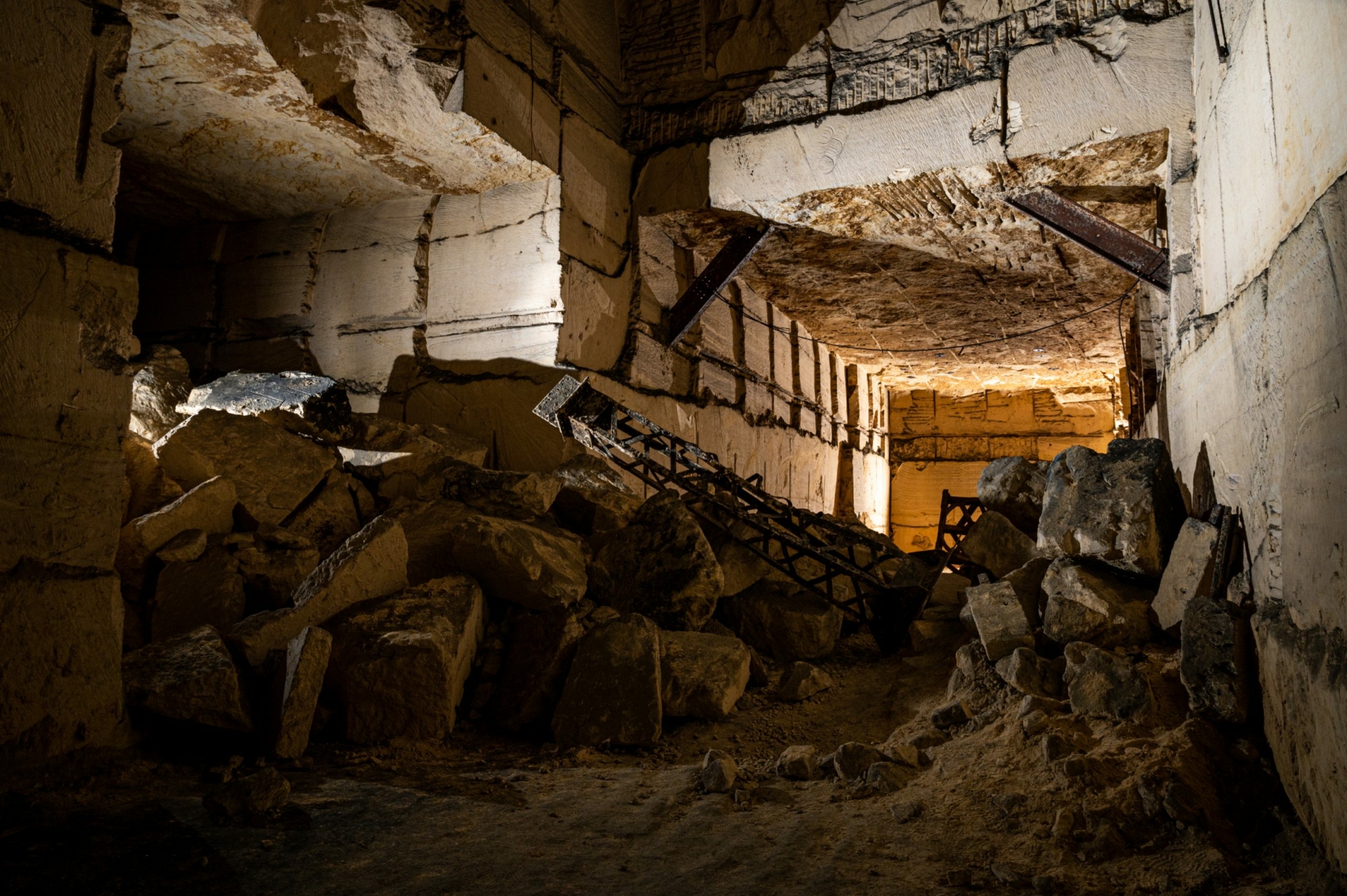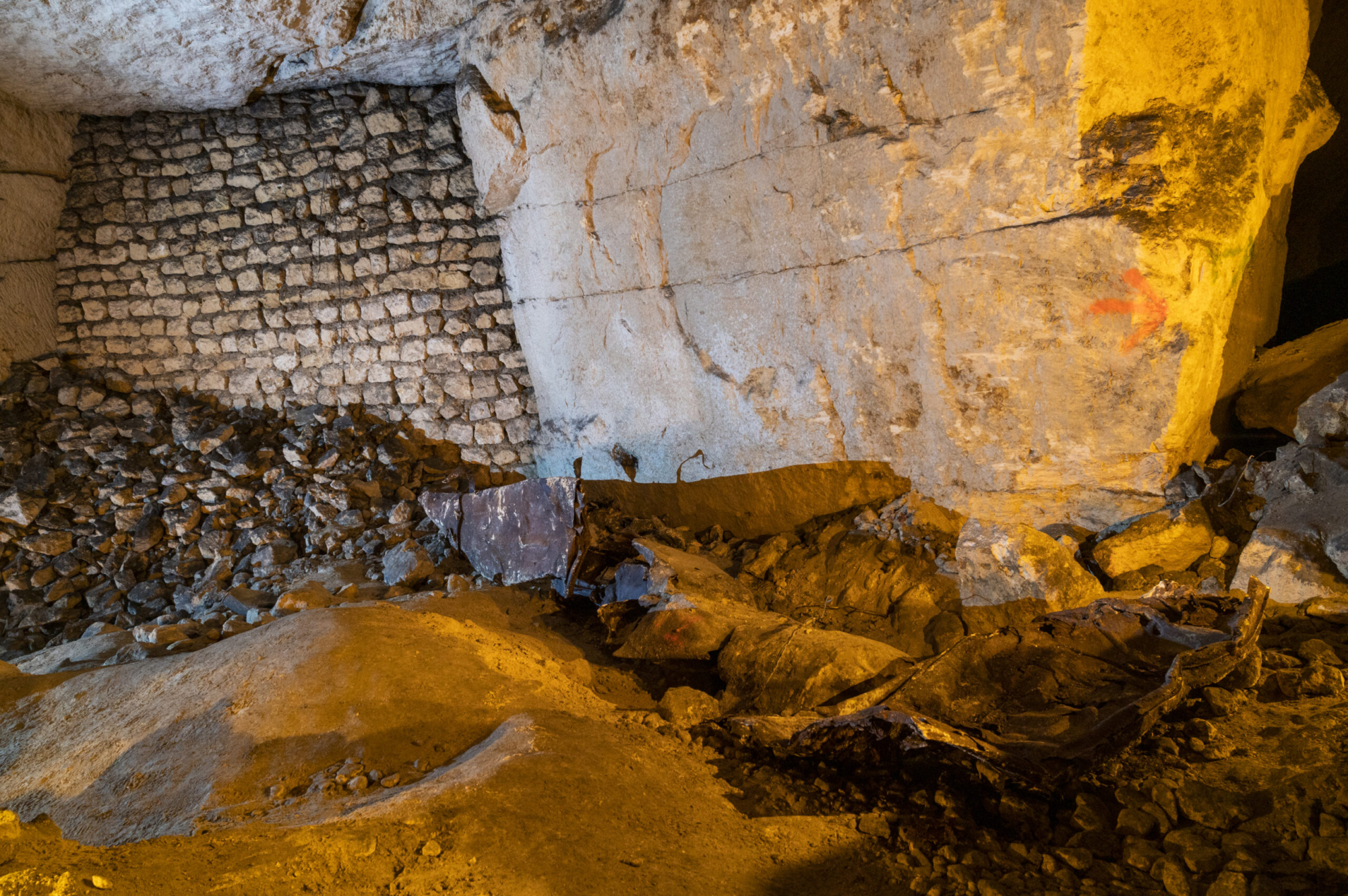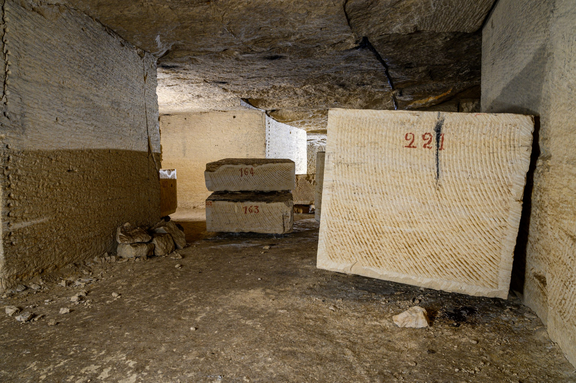 Blocs de calcaires prêts à être sortis, abandonnés suite a l'effondrement de la galerie de servitude.