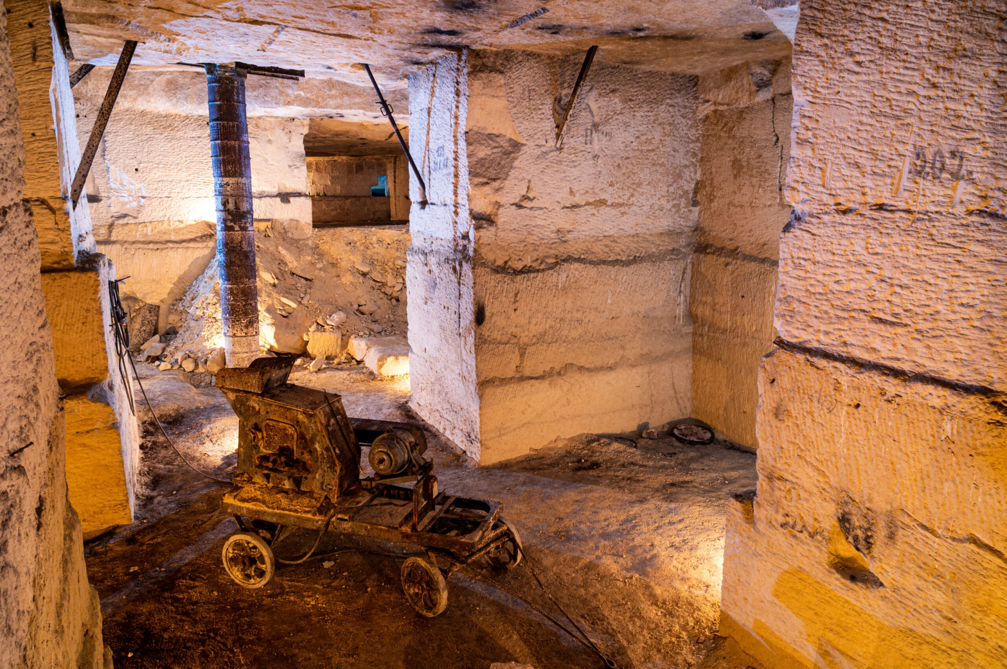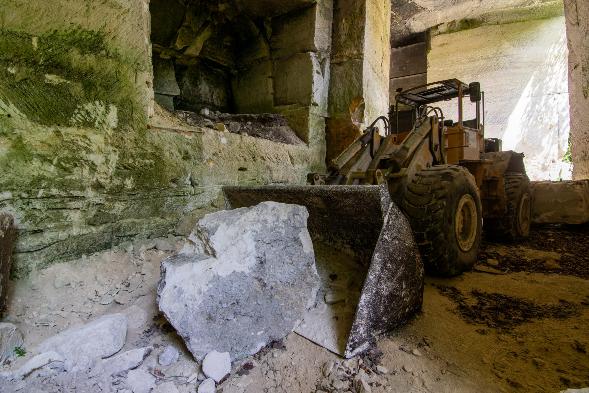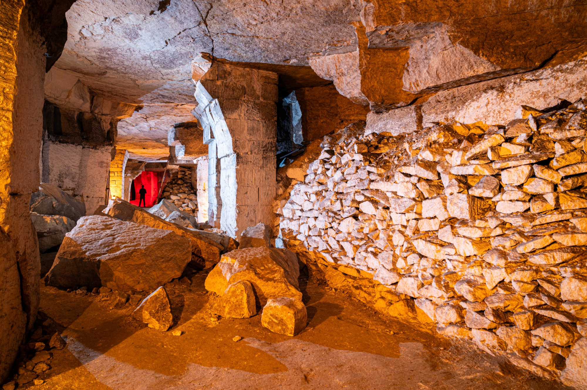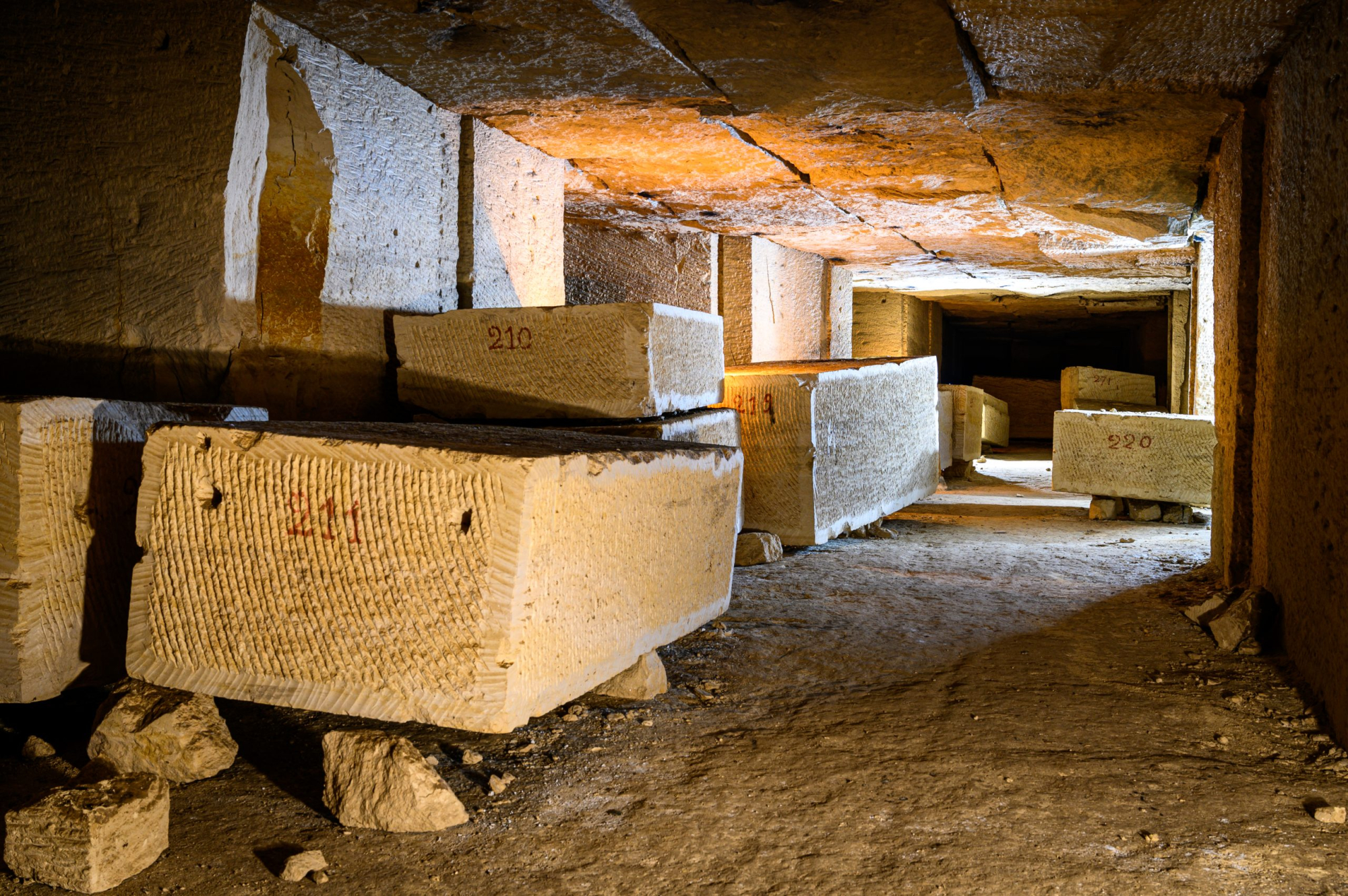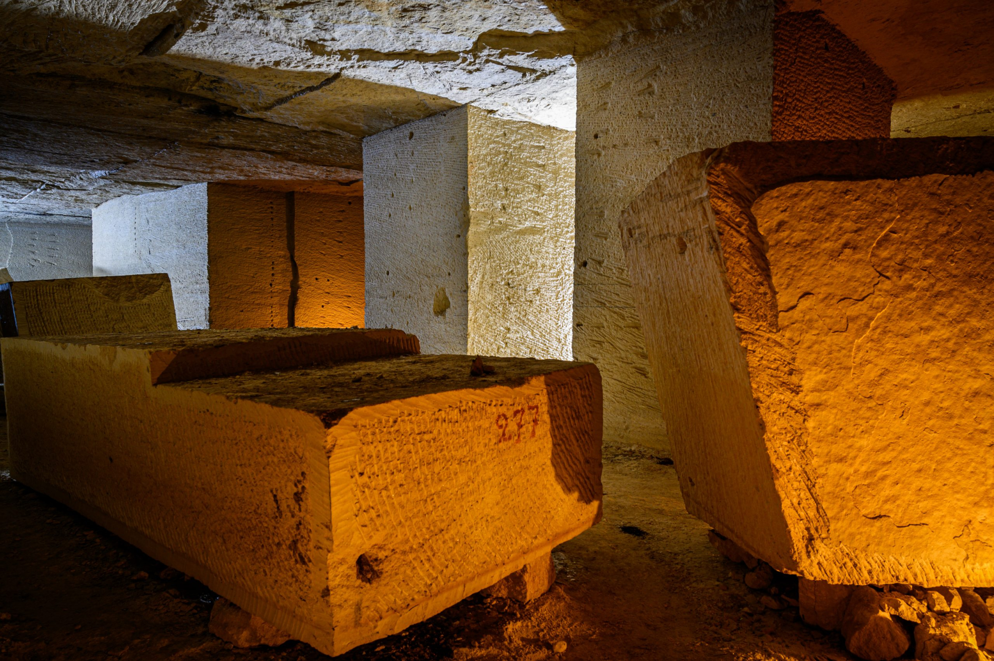 Blocs de calcaires prêts à être sortis, abandonnés suite a l'effondrement de la galerie de servitude.