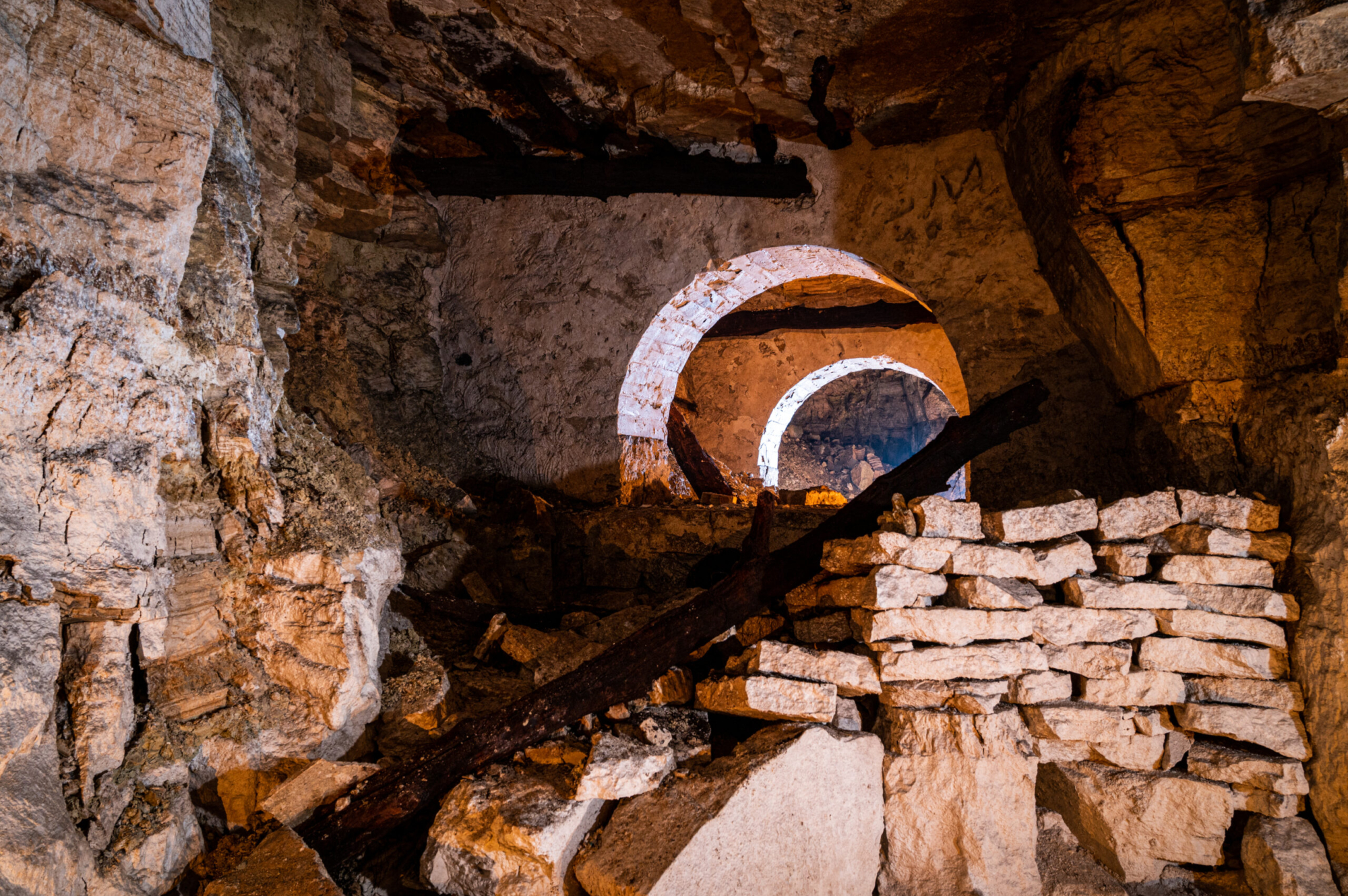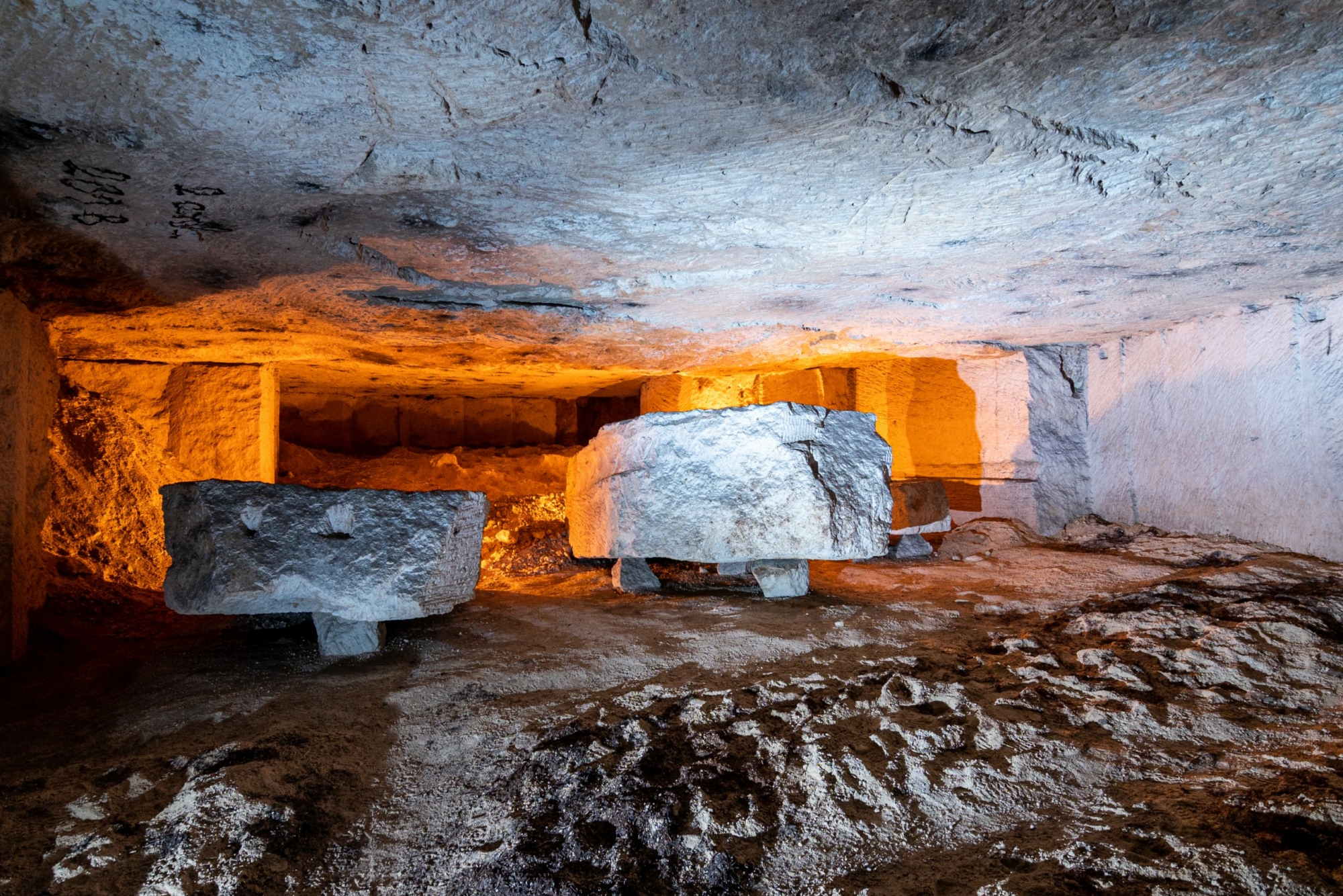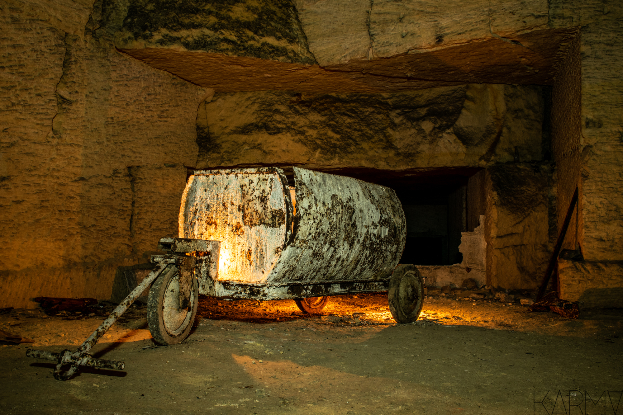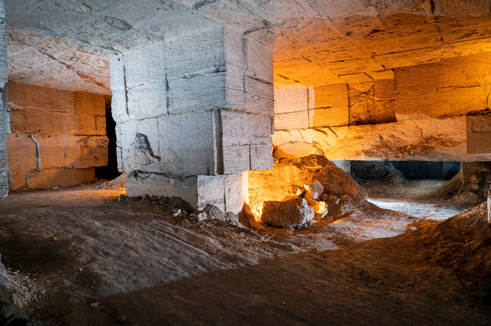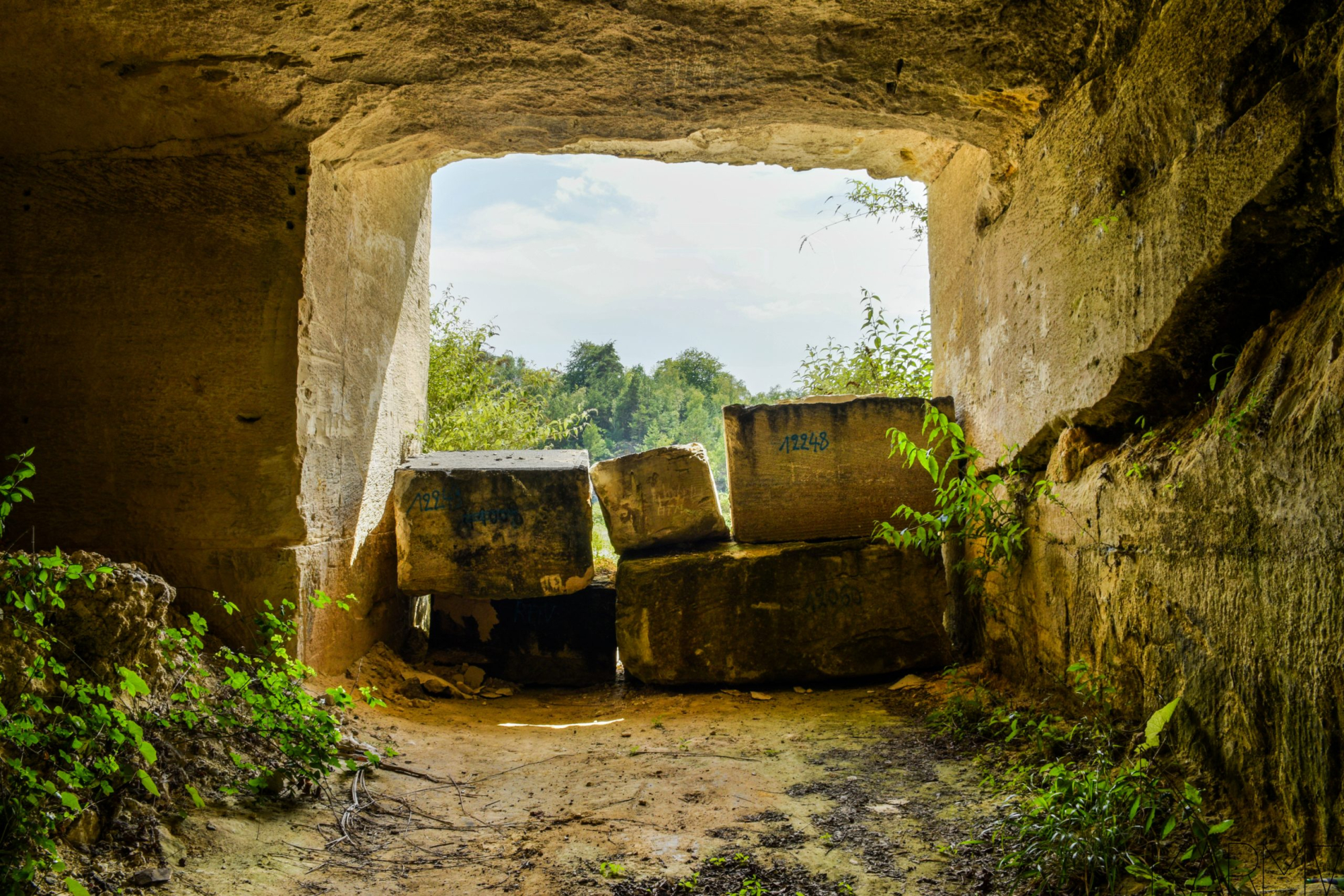 Blocs de calcaires prêts à être sortis, abandonnés suite a l'effondrement de la galerie de servitude.