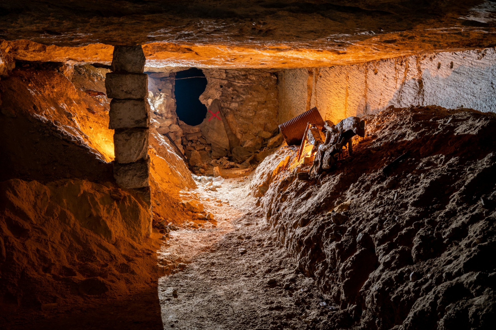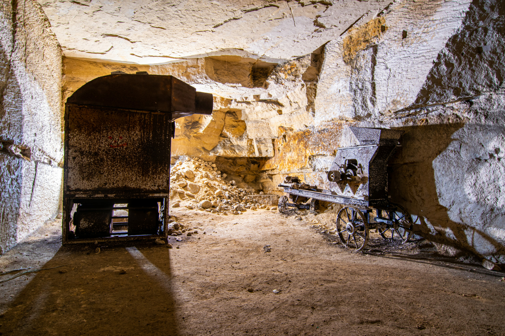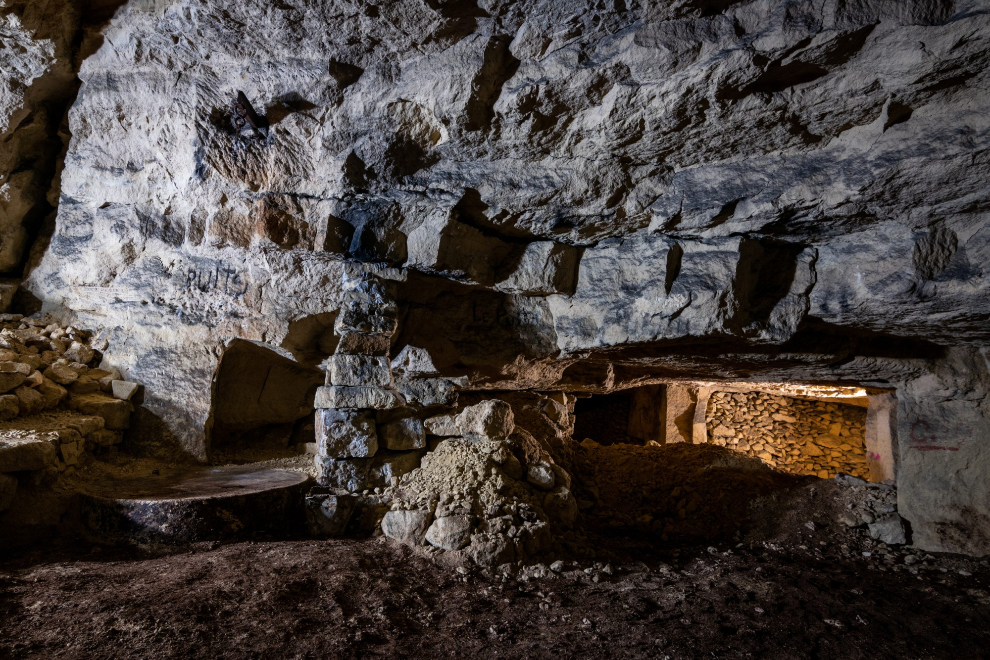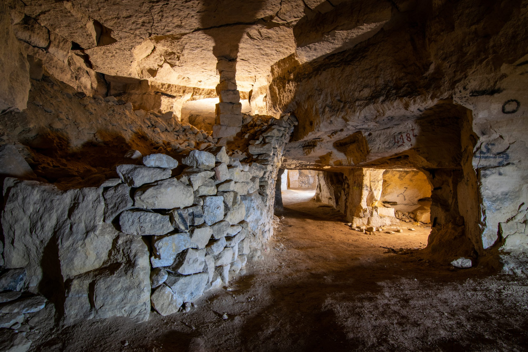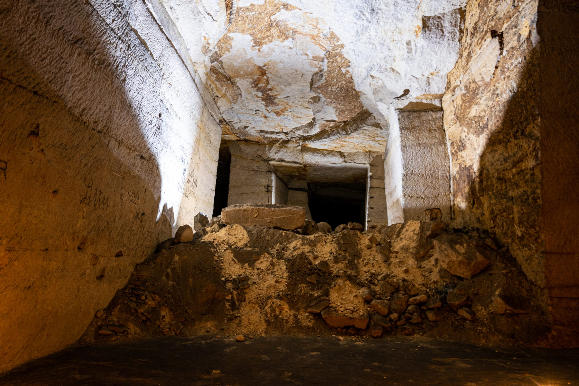 Blocs de calcaires prêts à être sortis, abandonnés suite a l'effondrement de la galerie de servitude.