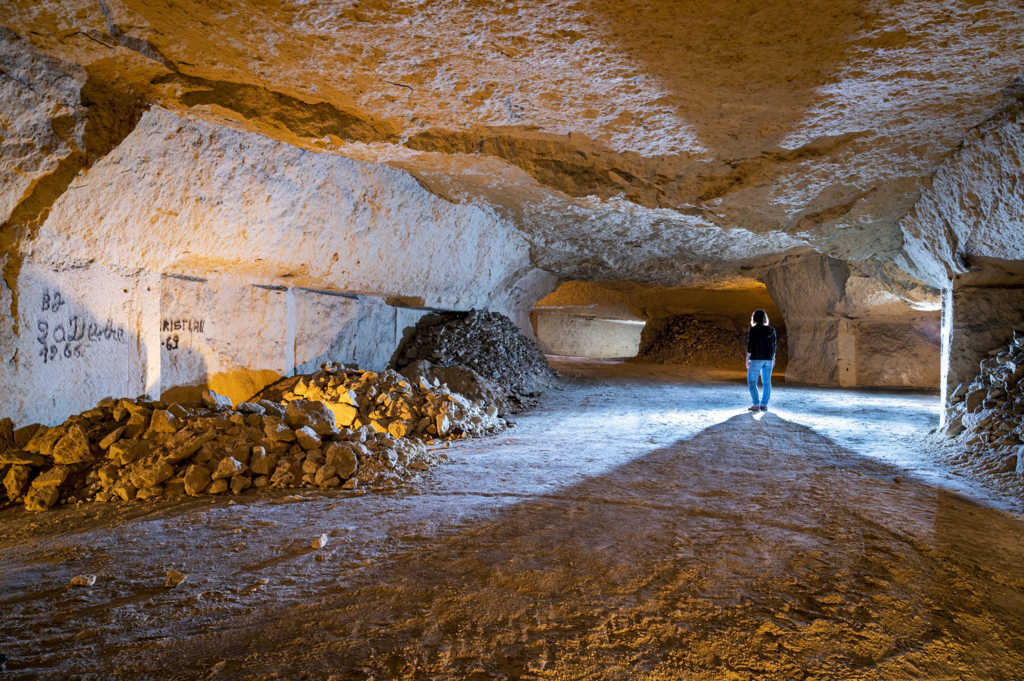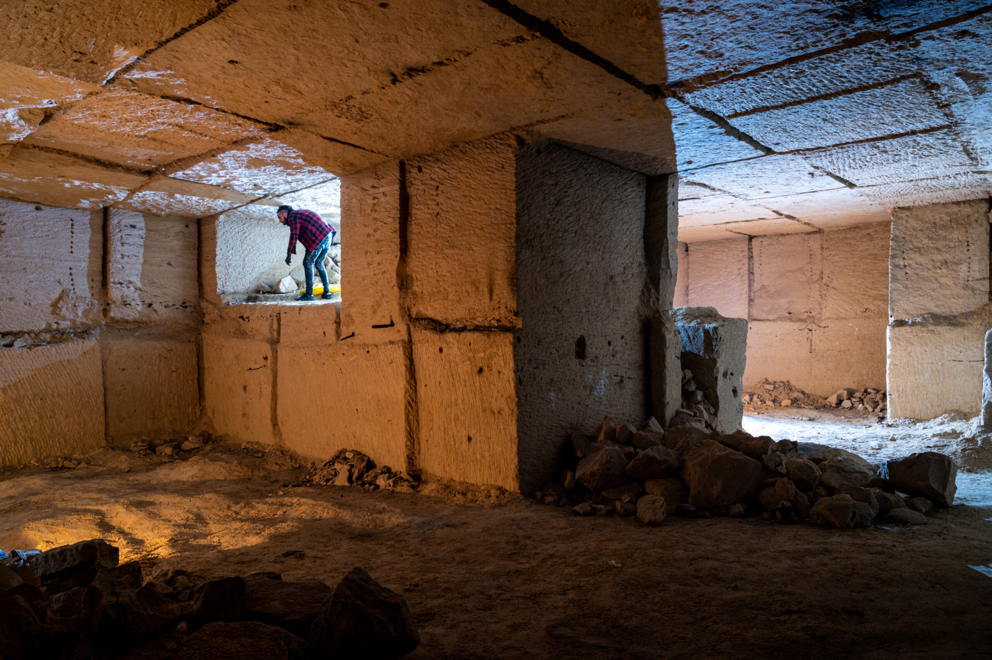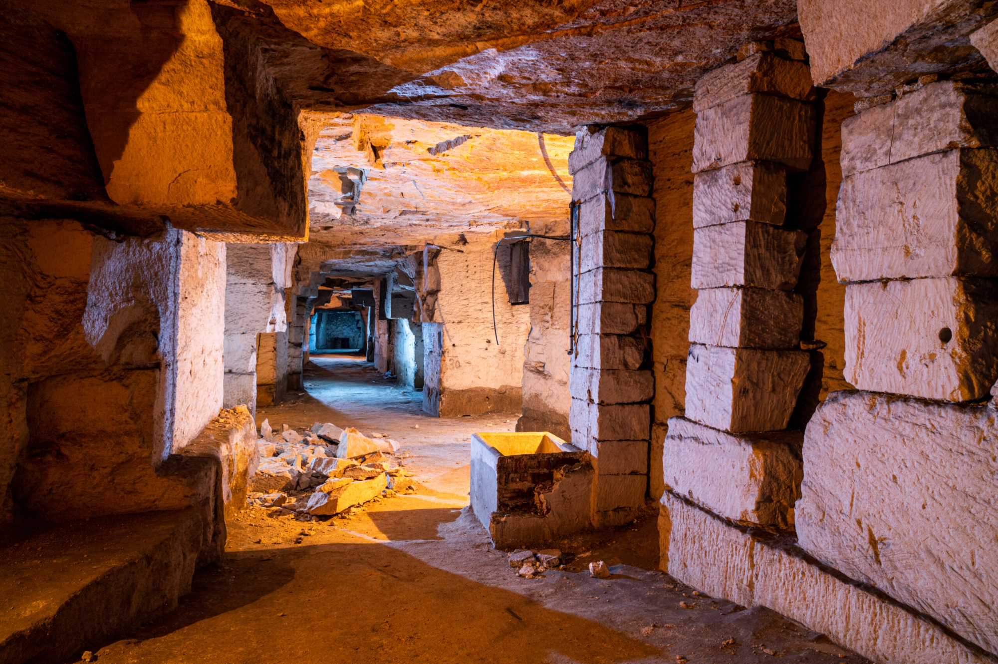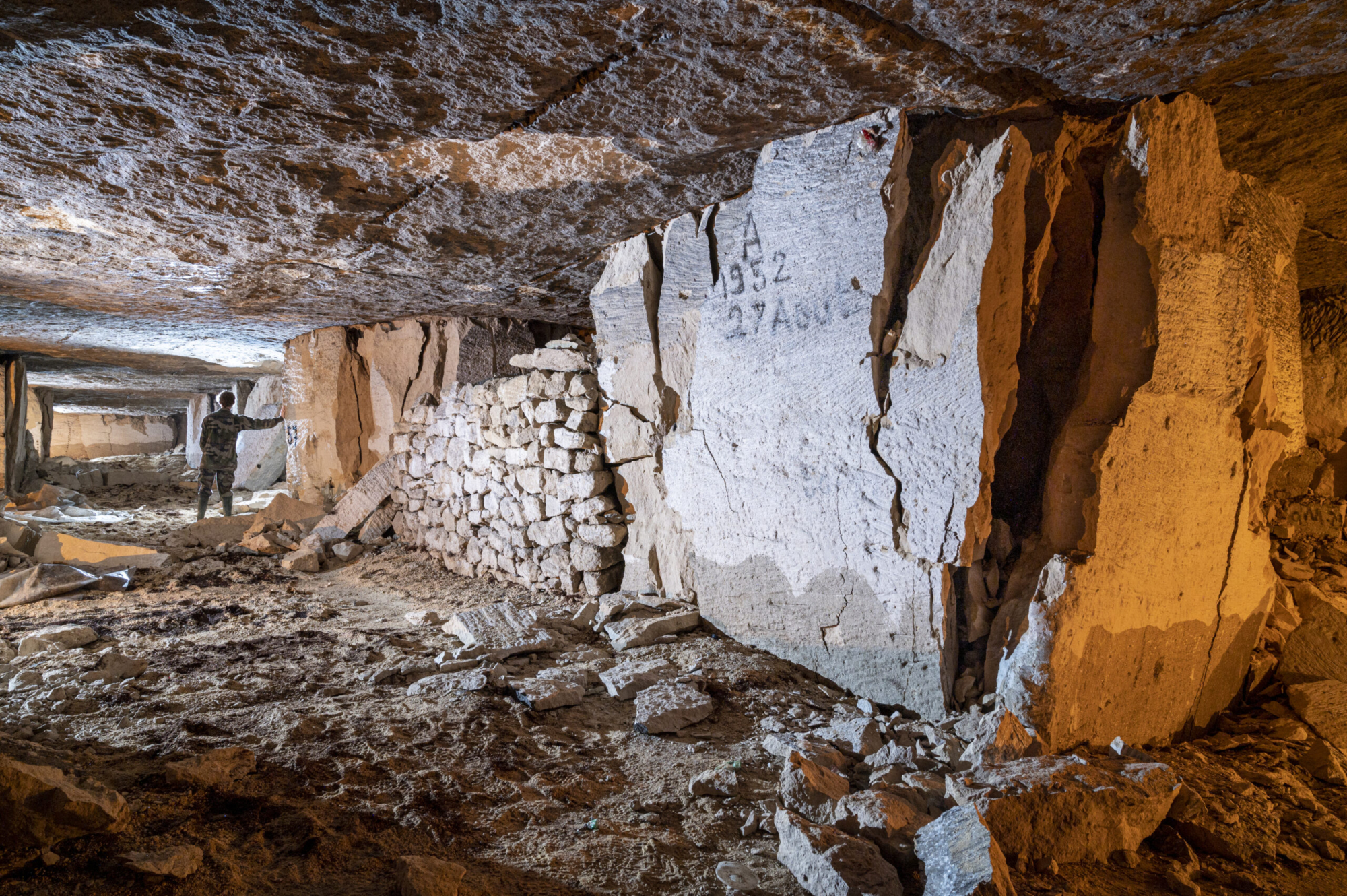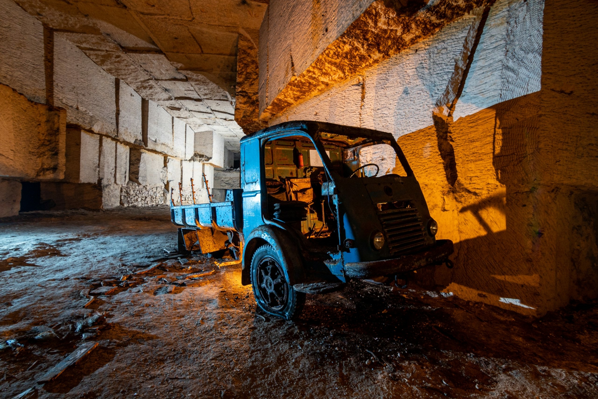 Blocs de calcaires prêts à être sortis, abandonnés suite a l'effondrement de la galerie de servitude.