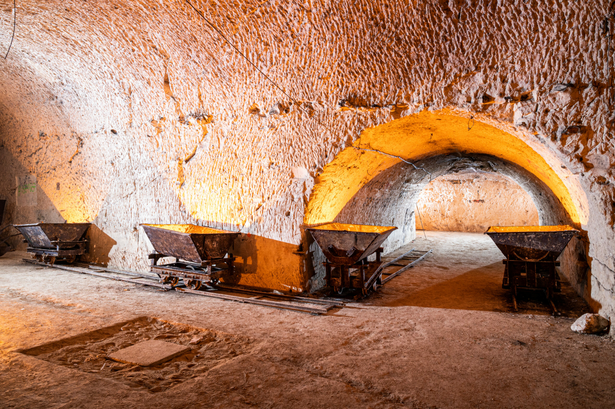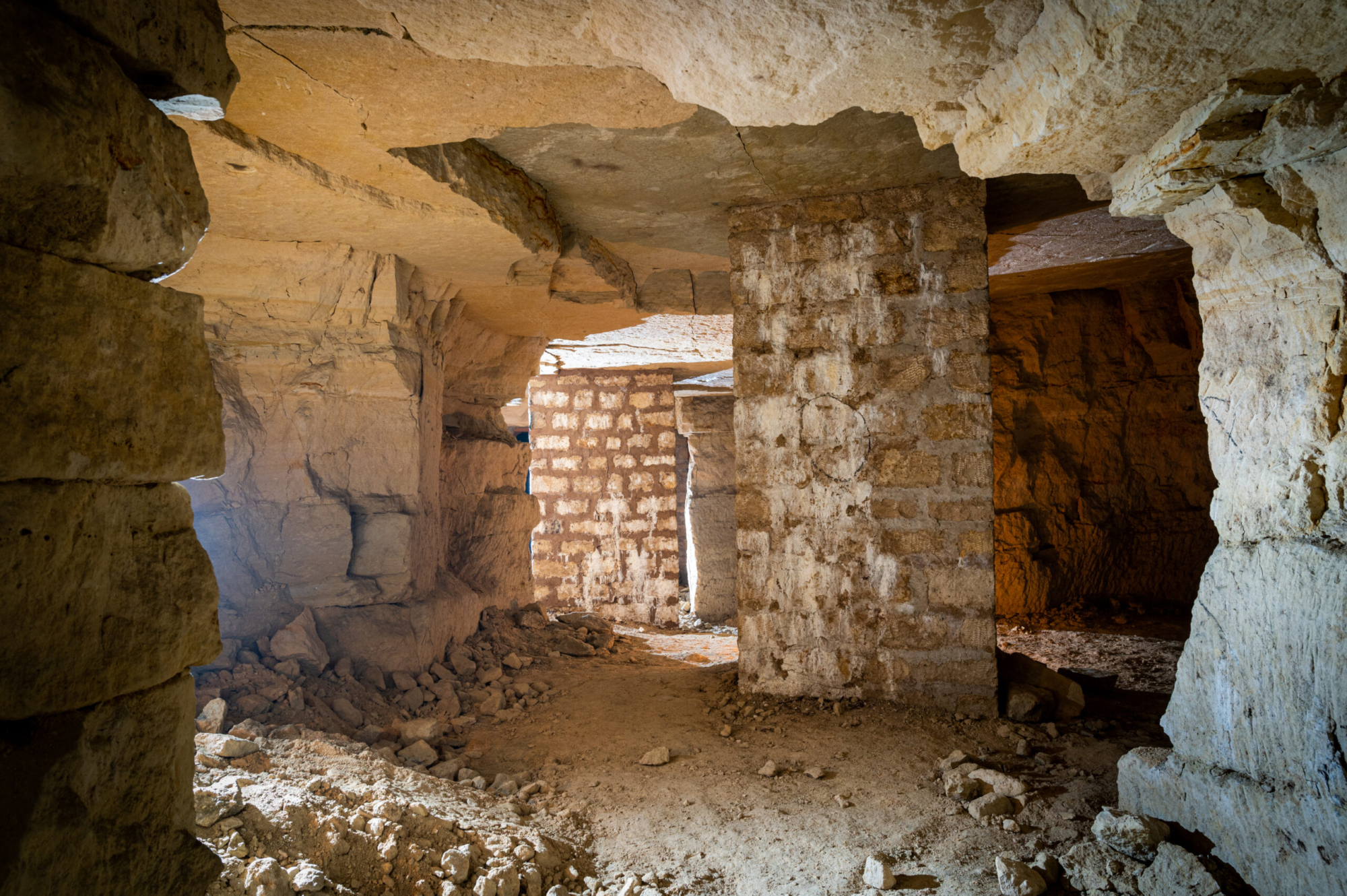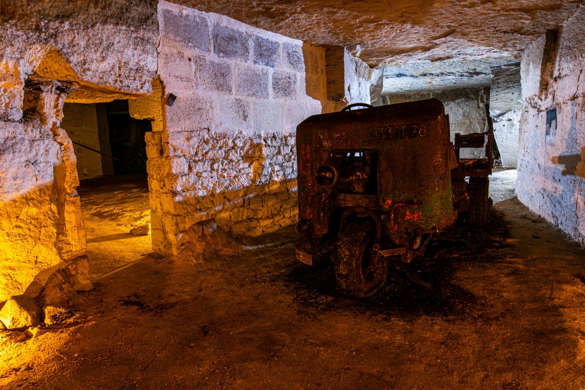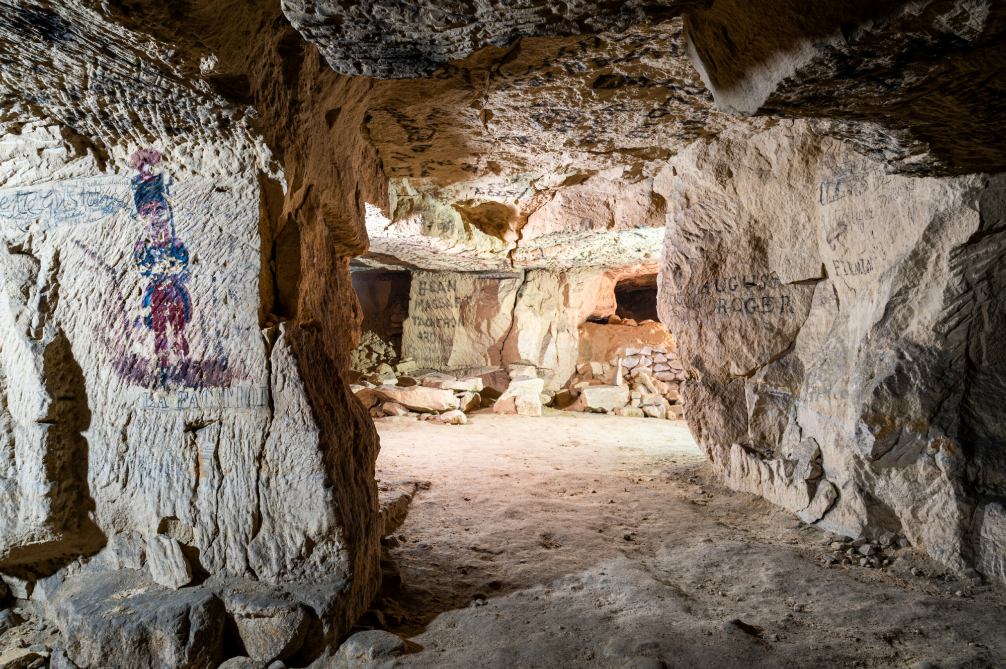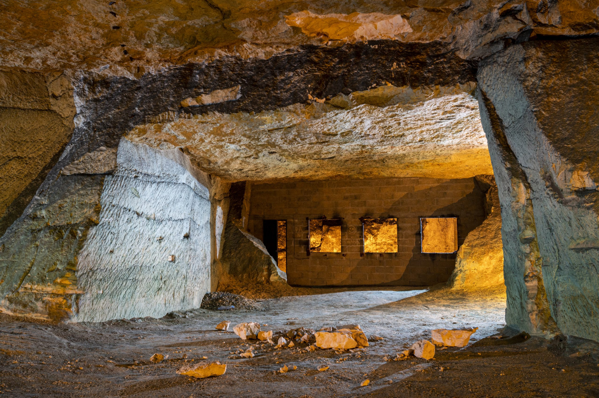 Blocs de calcaires prêts à être sortis, abandonnés suite a l'effondrement de la galerie de servitude.
