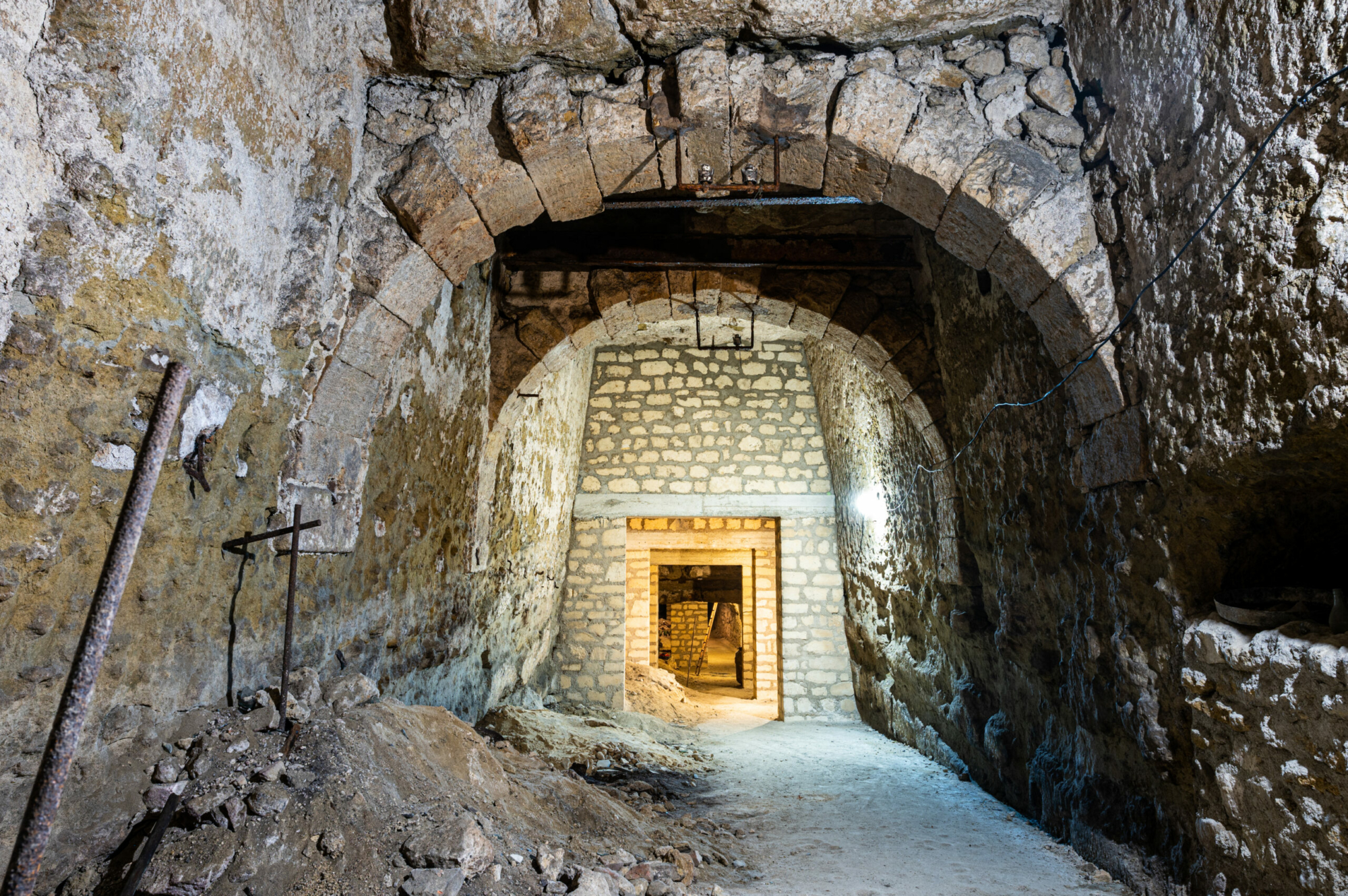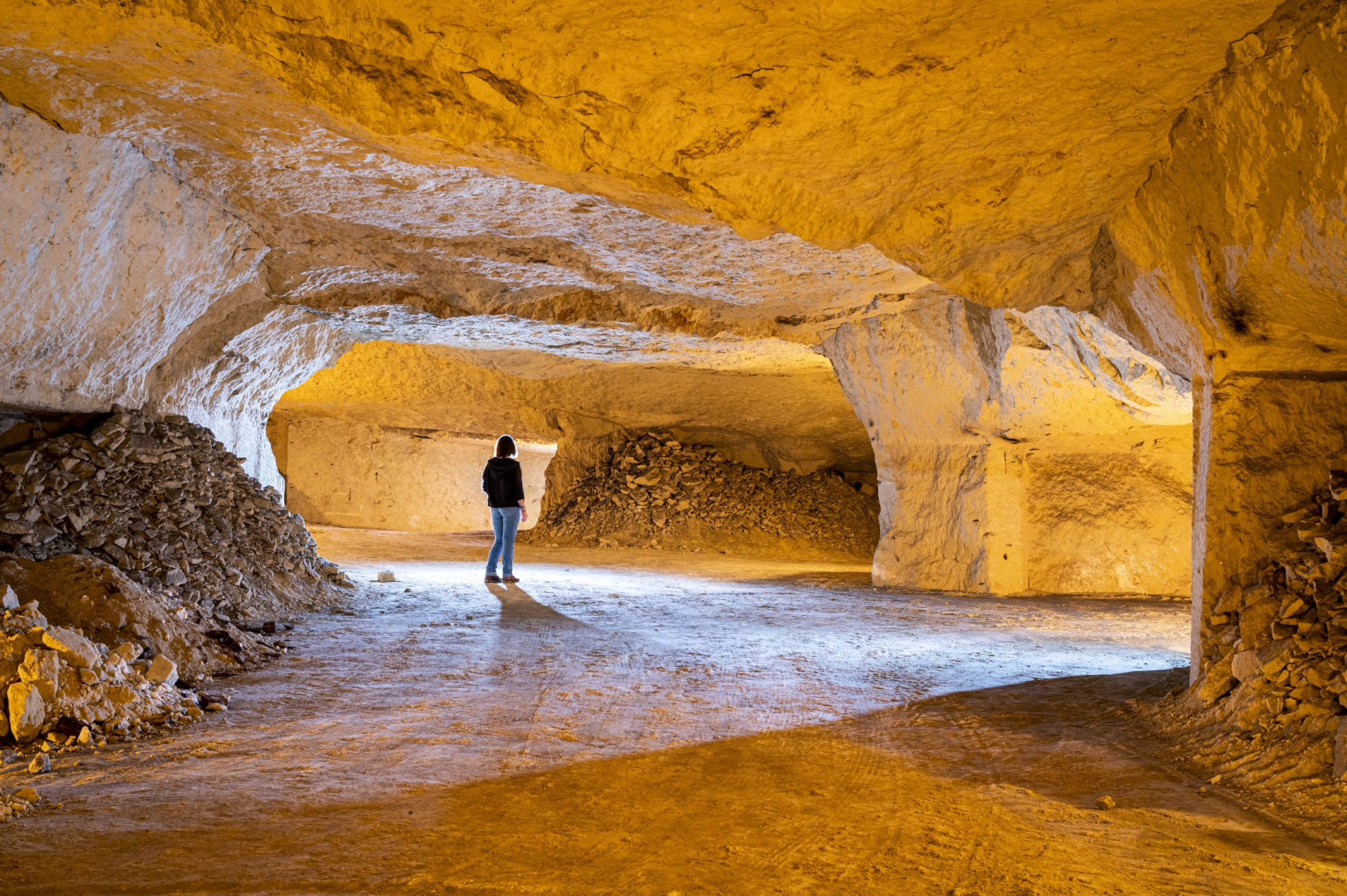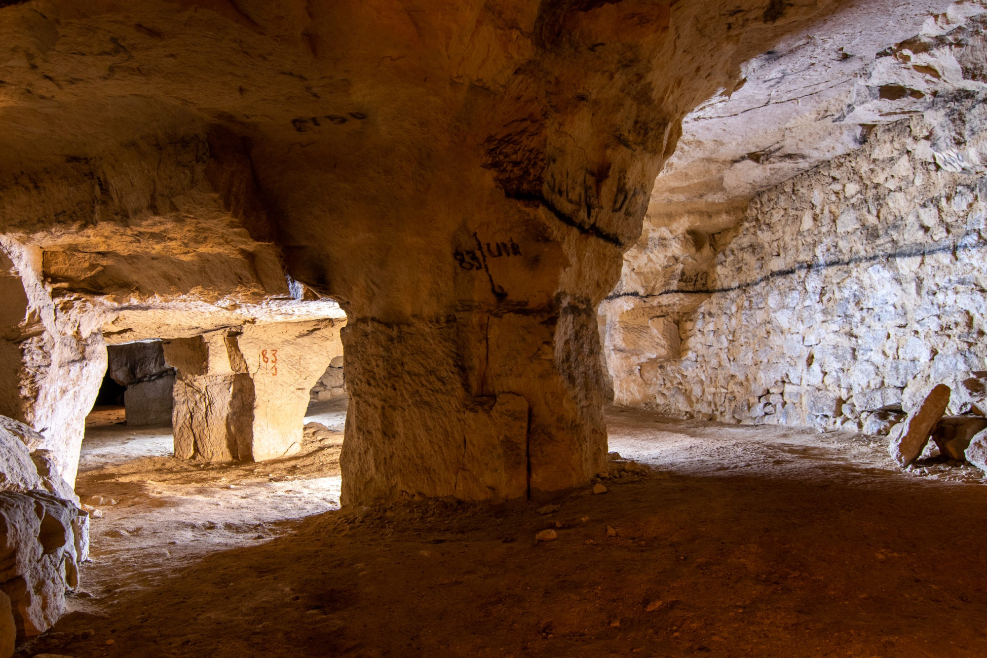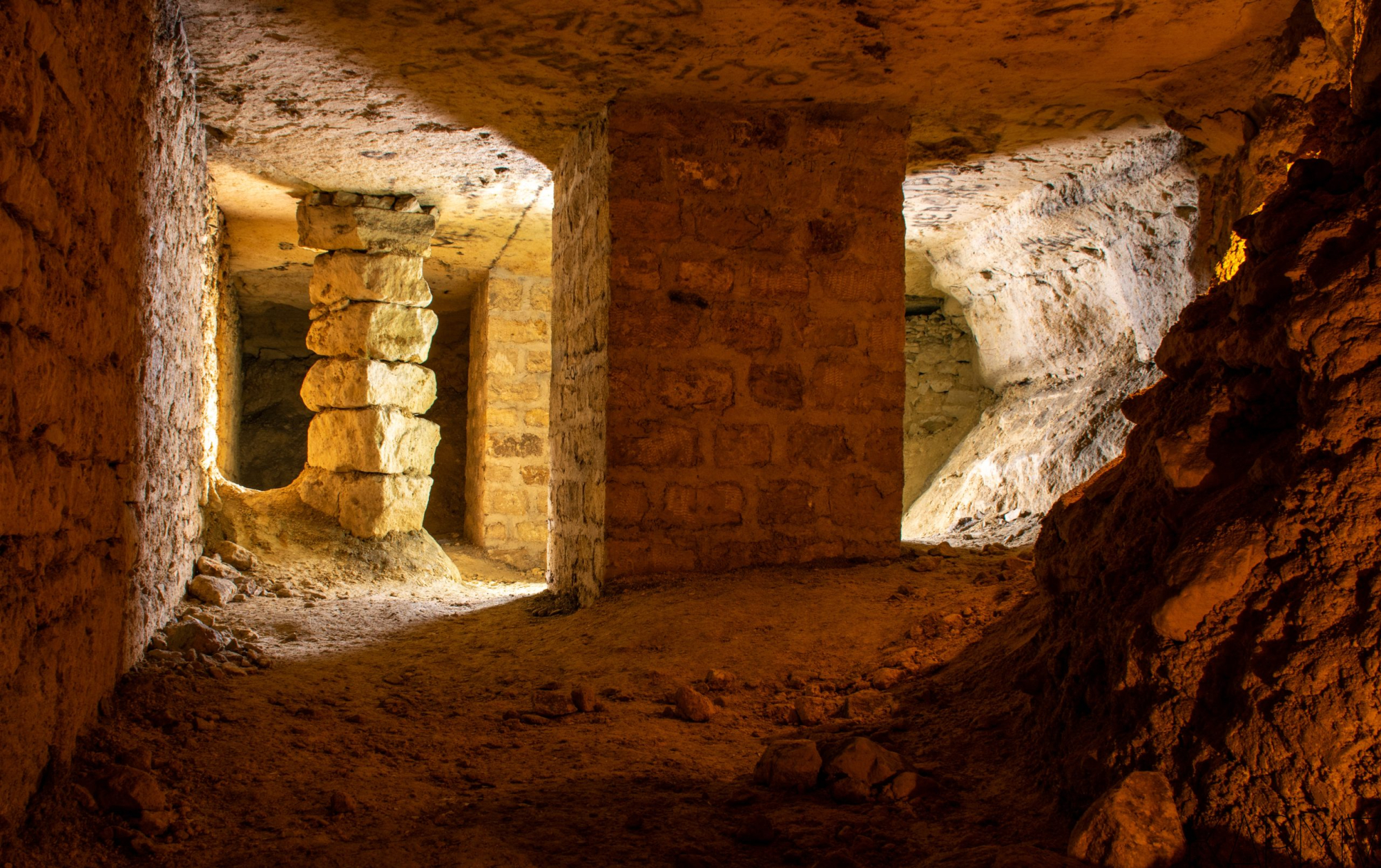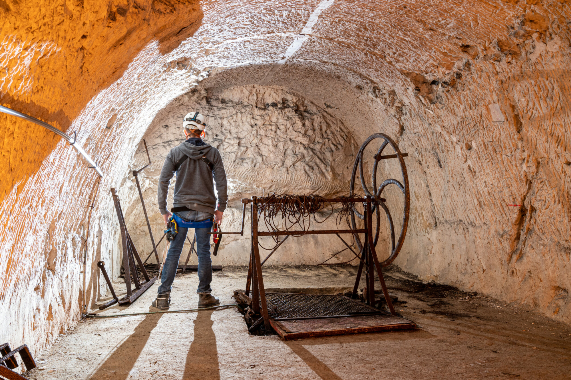 Blocs de calcaires prêts à être sortis, abandonnés suite a l'effondrement de la galerie de servitude.