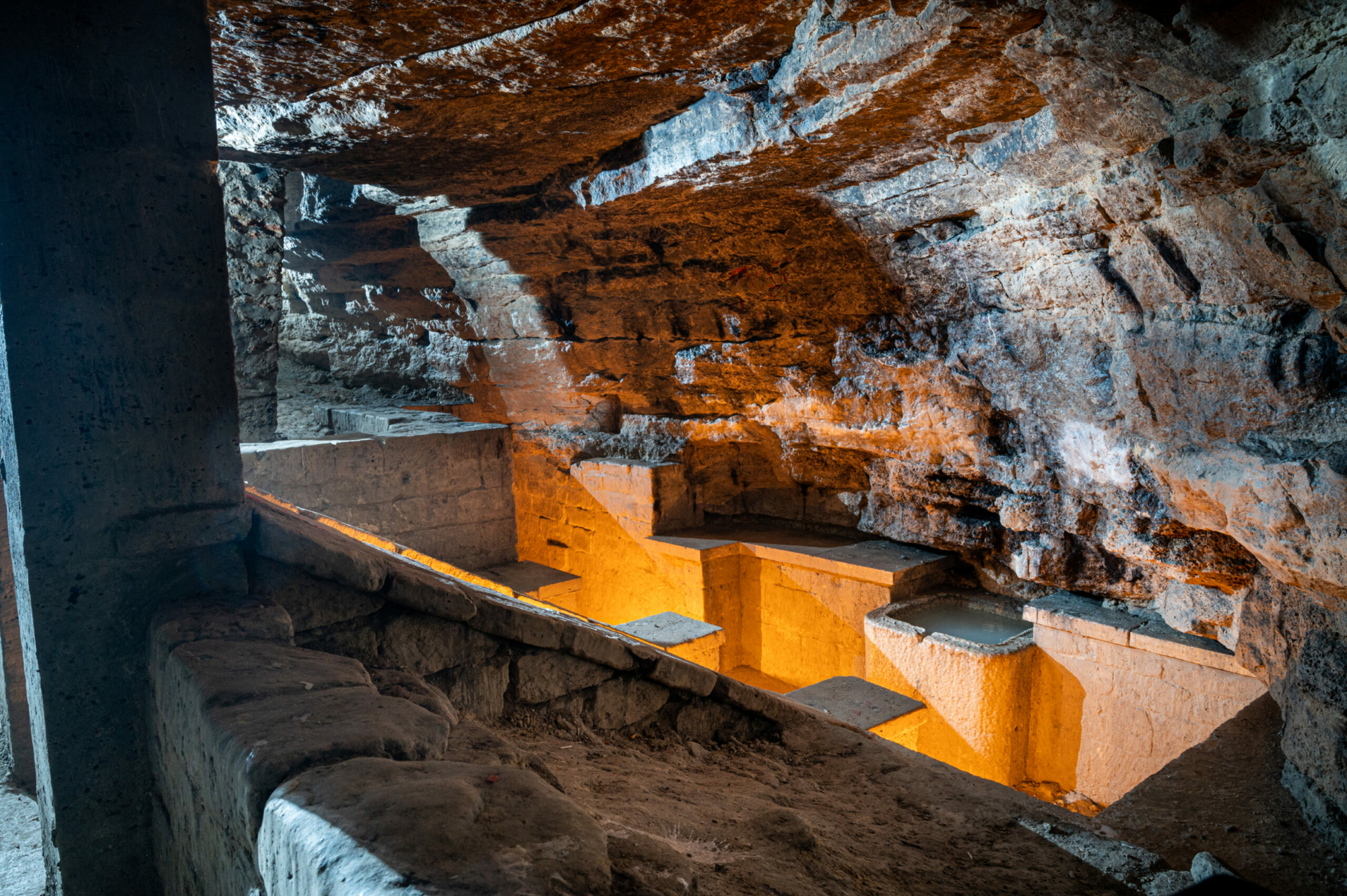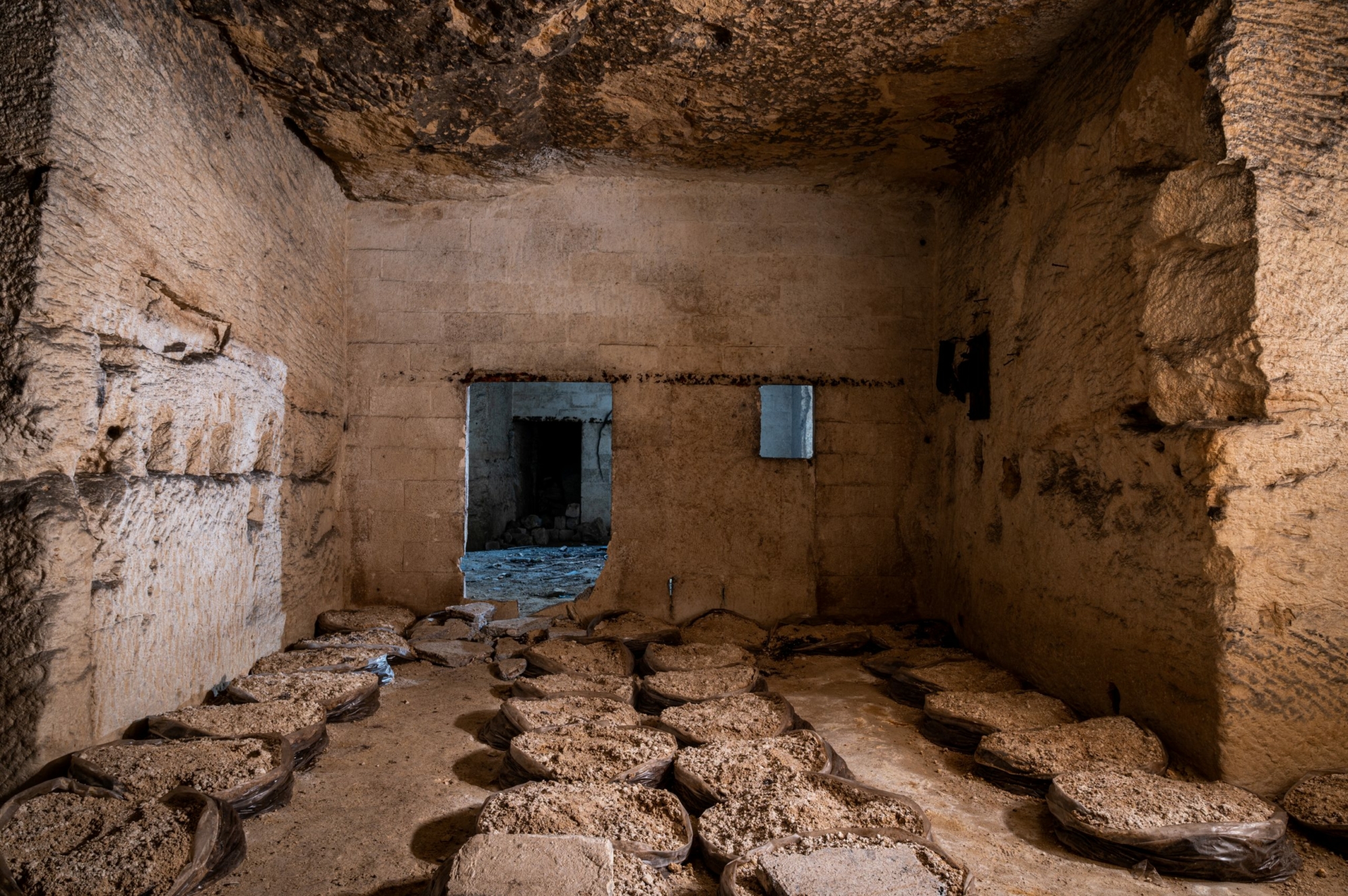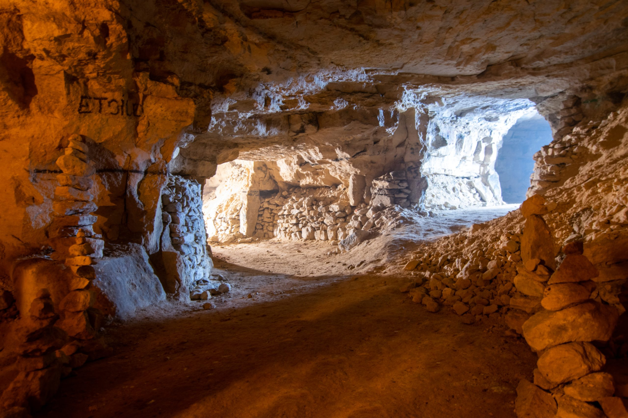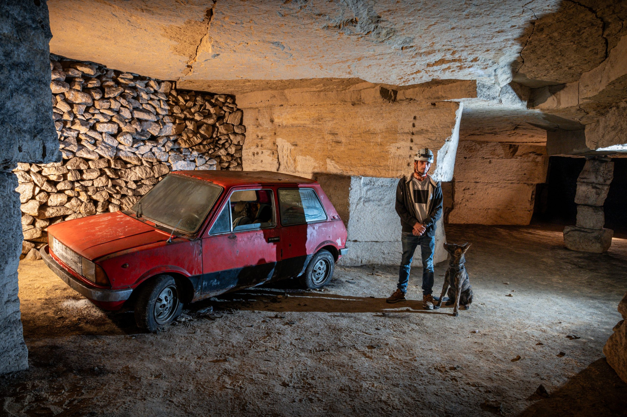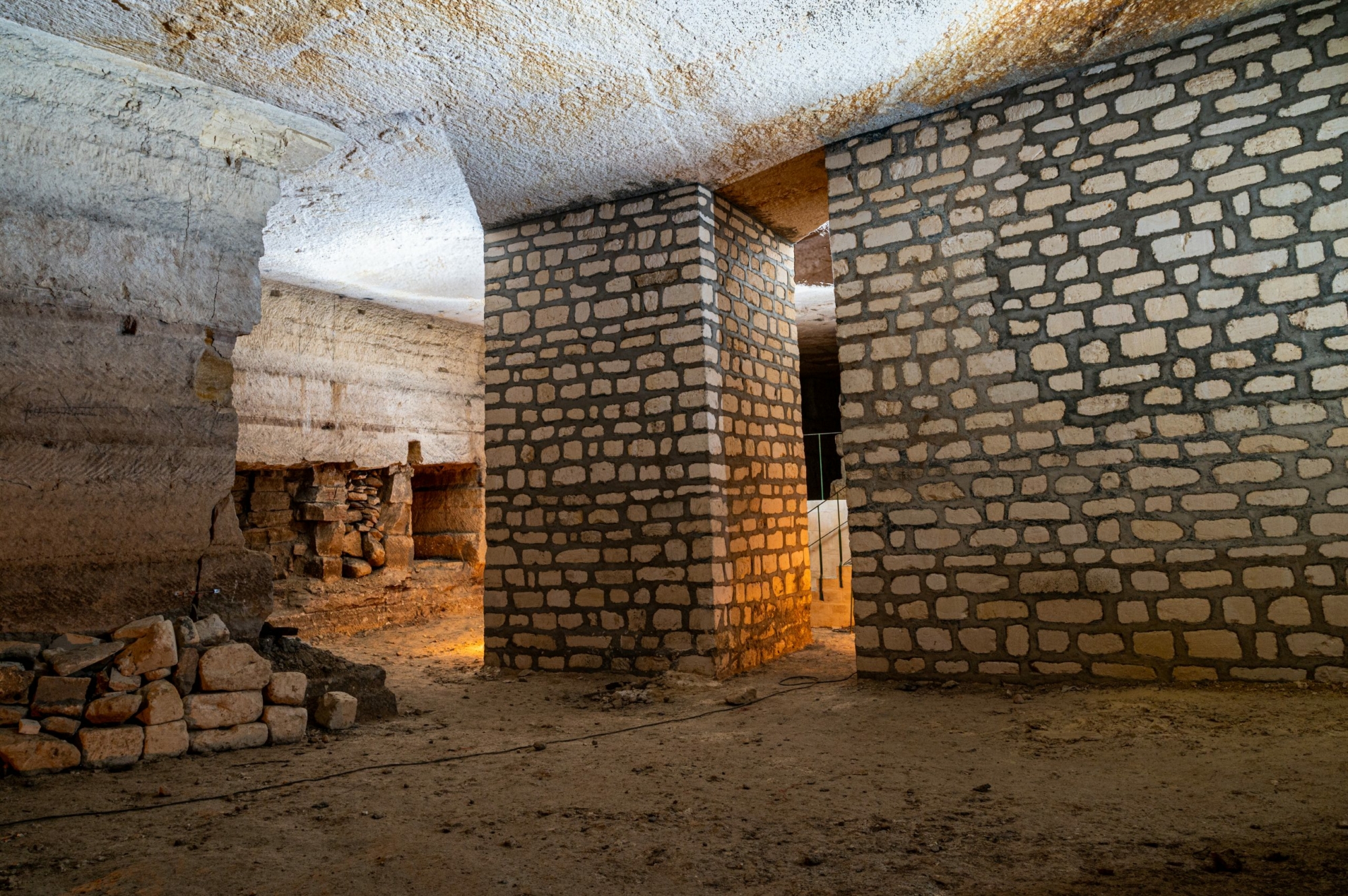 Blocs de calcaires prêts à être sortis, abandonnés suite a l'effondrement de la galerie de servitude.